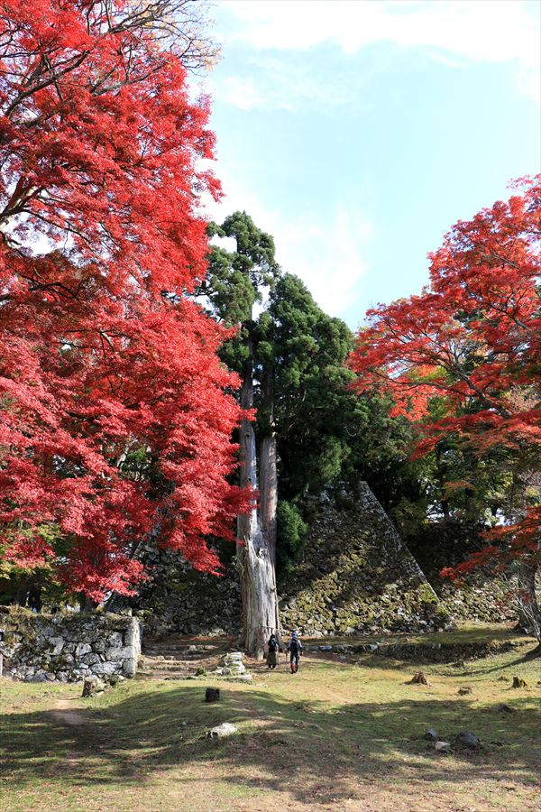 本丸から下った所。晴れてきて紅葉がいい感じに映えています。