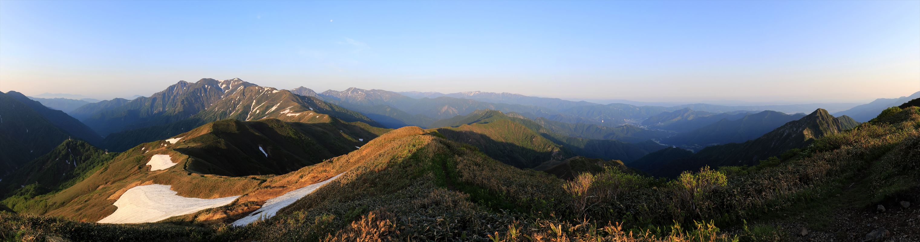 ここも森林限界なので展望は良い。前日はあまりよく見えなかった万太郎山、仙ノ倉山方面の稜線が近付きつつある。