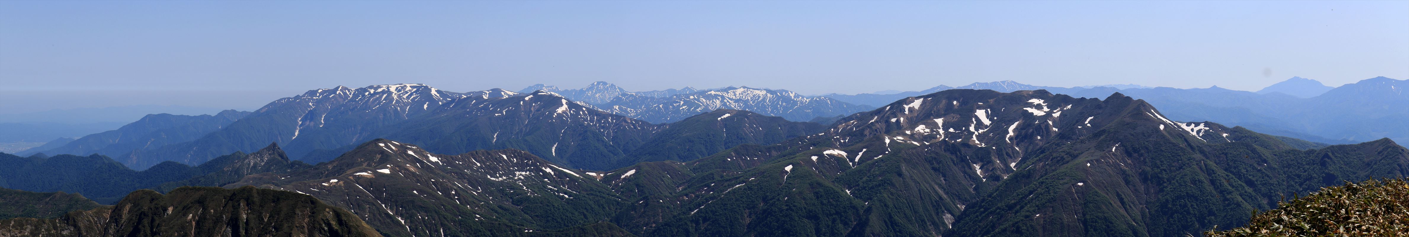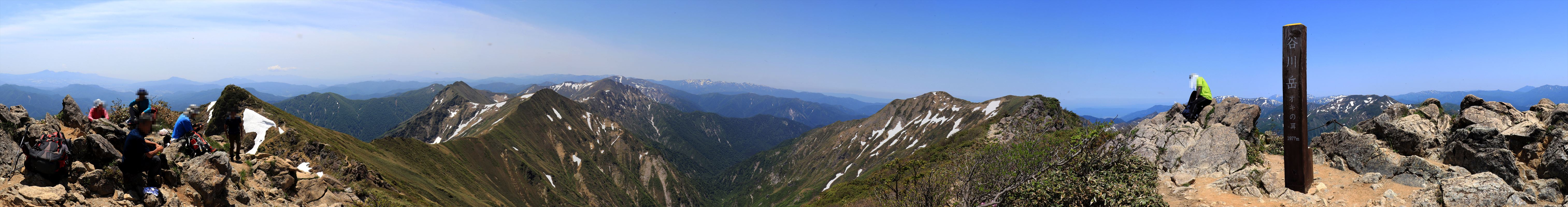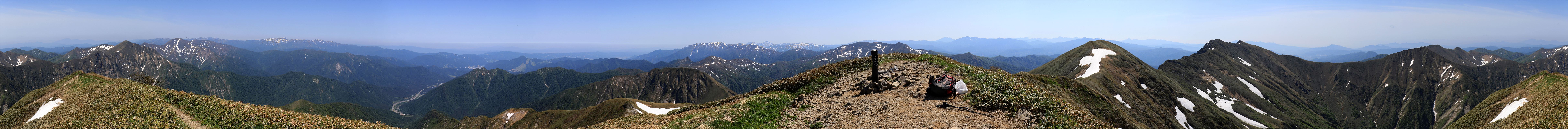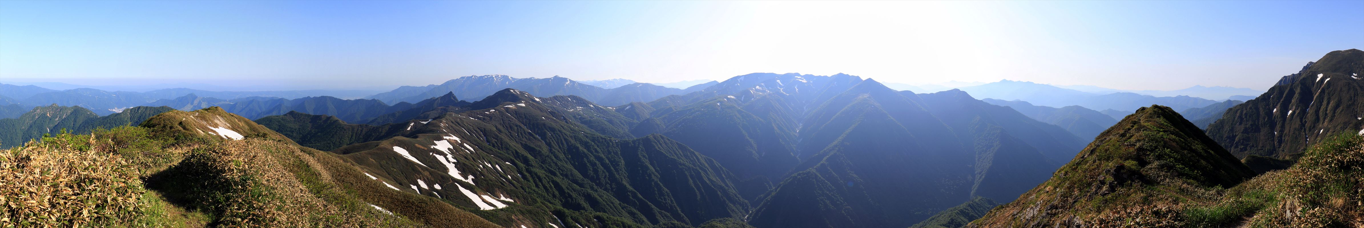茂倉岳からの360度展望。ブヨが大量発生していて撮るのに苦労した。というか何箇所か噛まれた。耳の裏とかめんどくさい所を集中的に狙ってくるのが本当に厄介。