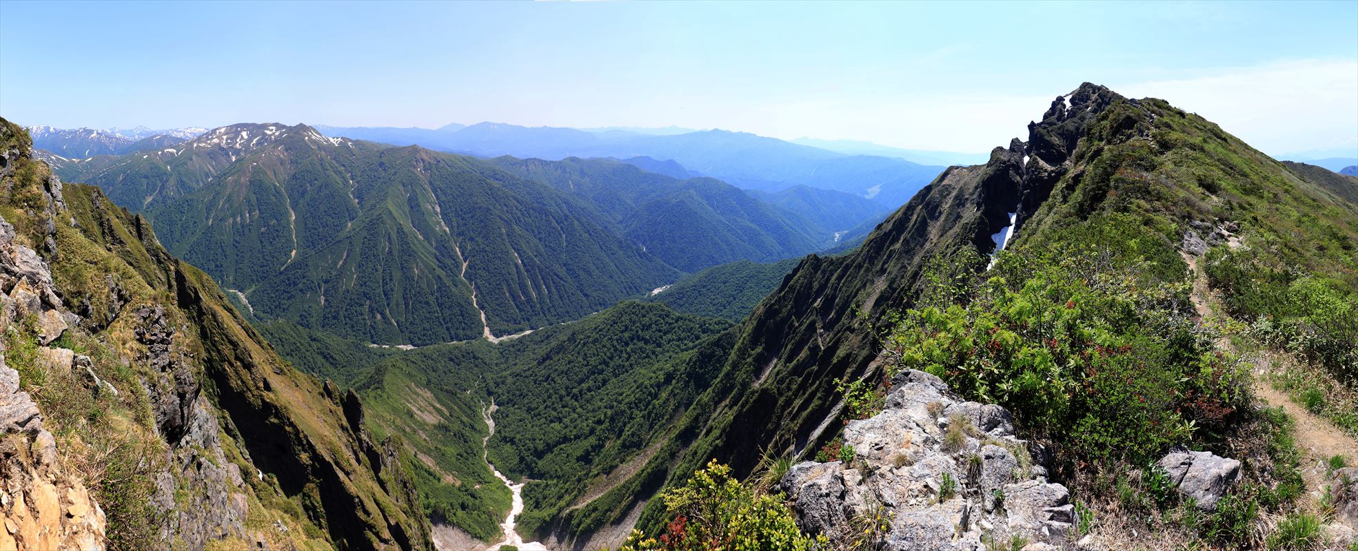 ノゾキからの展望。麓まで標高差1,000m以上あるから高度感凄い。吸い込まれそう。