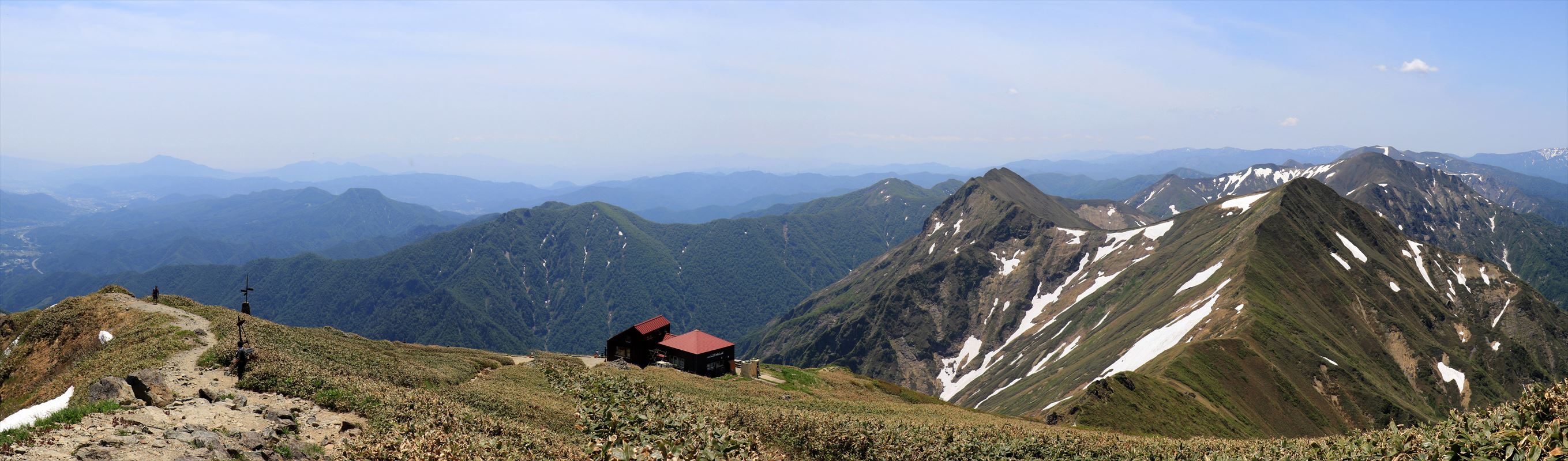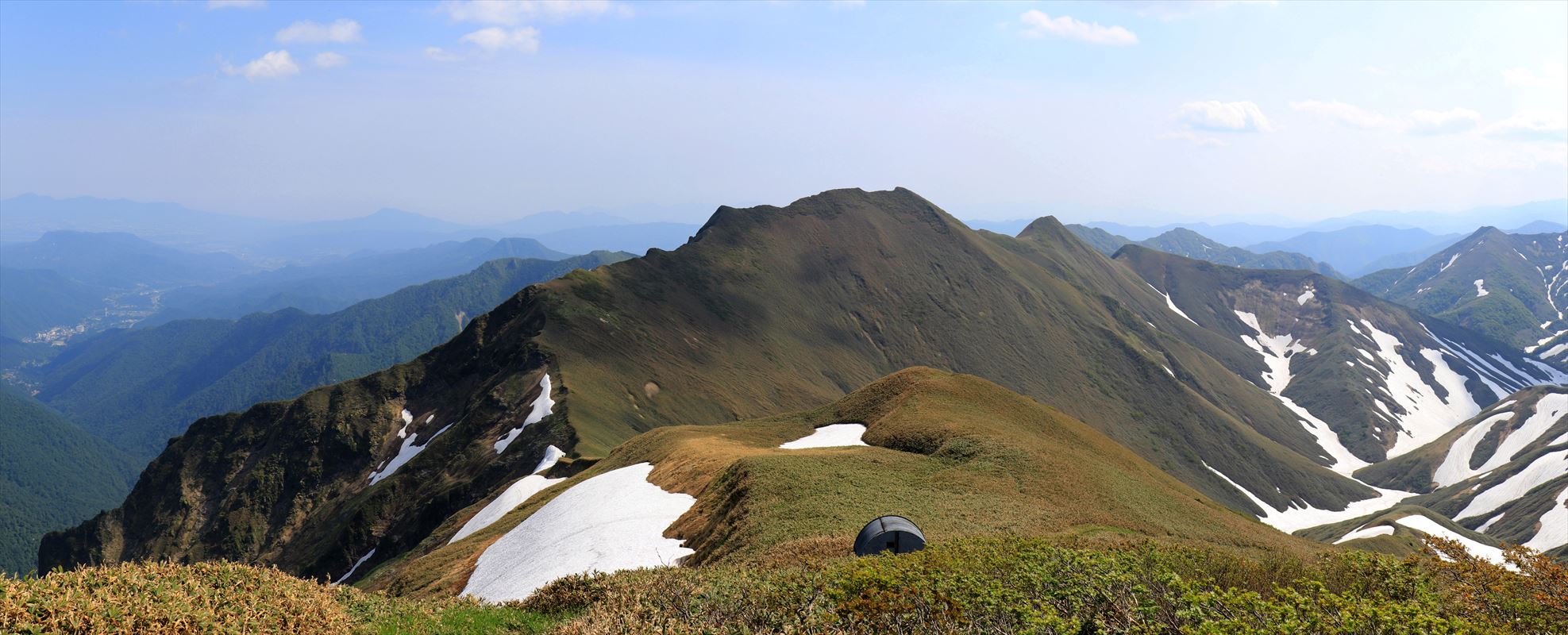 蓬峠にある蓬ヒュッテからの展望。有人小屋ですがこの日は小屋番は不在でした。テントスペースもあって水場も近いらしい。清水峠よりロケーションは良い気がする。