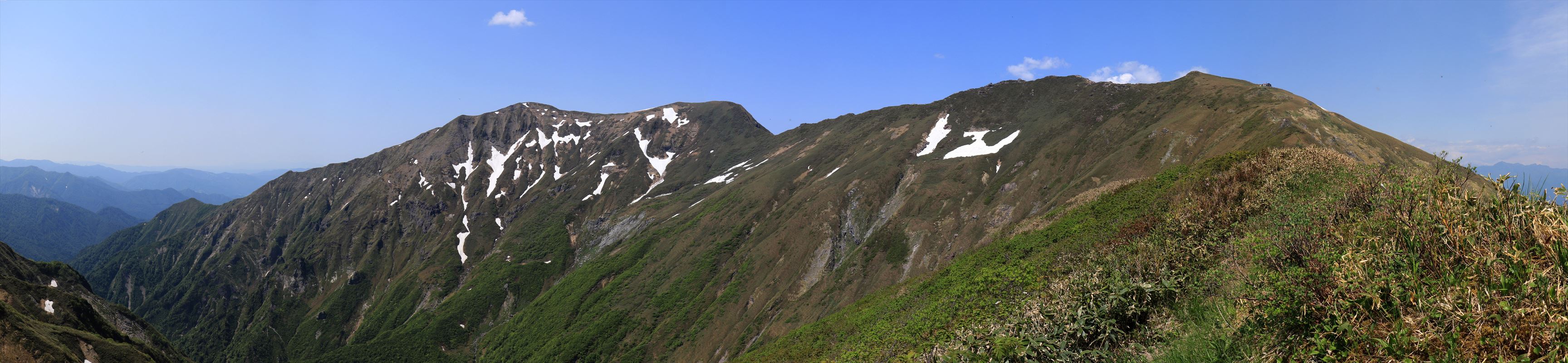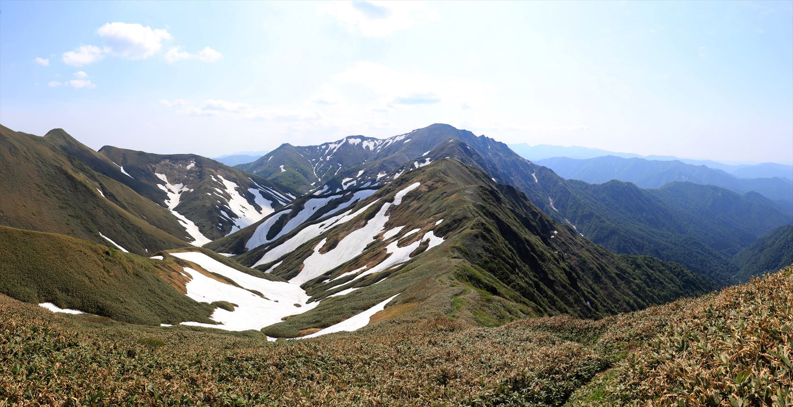 笹平付近から武能岳、朝日岳方面の展望。