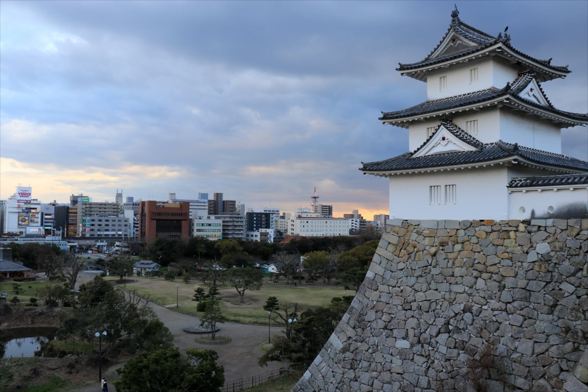 石垣の上には二つの櫓が残っています。右はかつて市内にあった船上城からの移築とされる巽櫓。左は京都の伏見城からの移築とされる坤櫓でどちらも国の重要文化財指定。