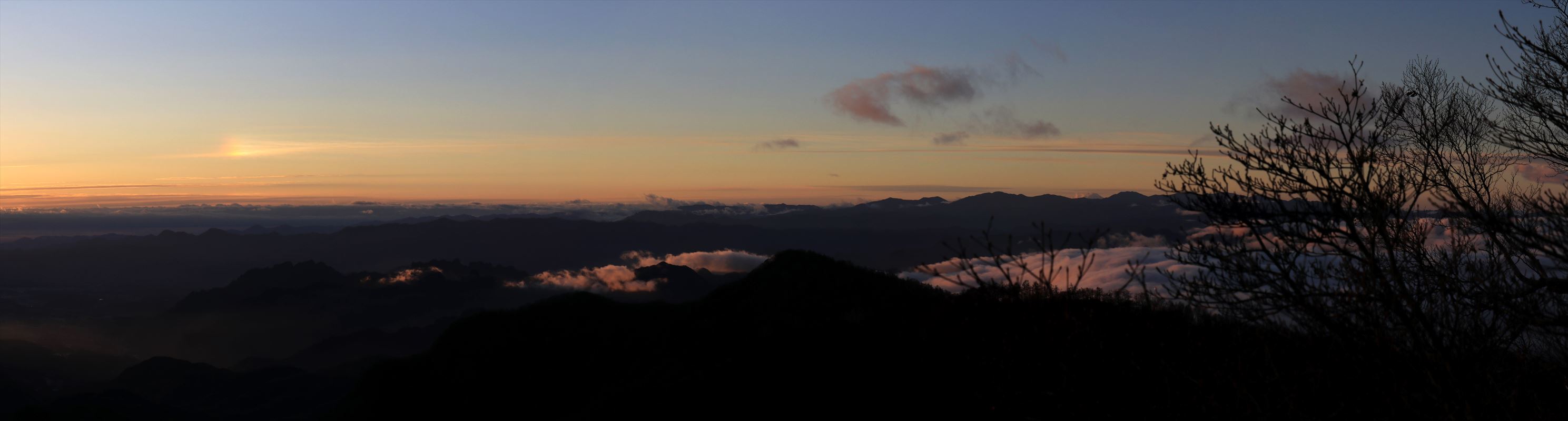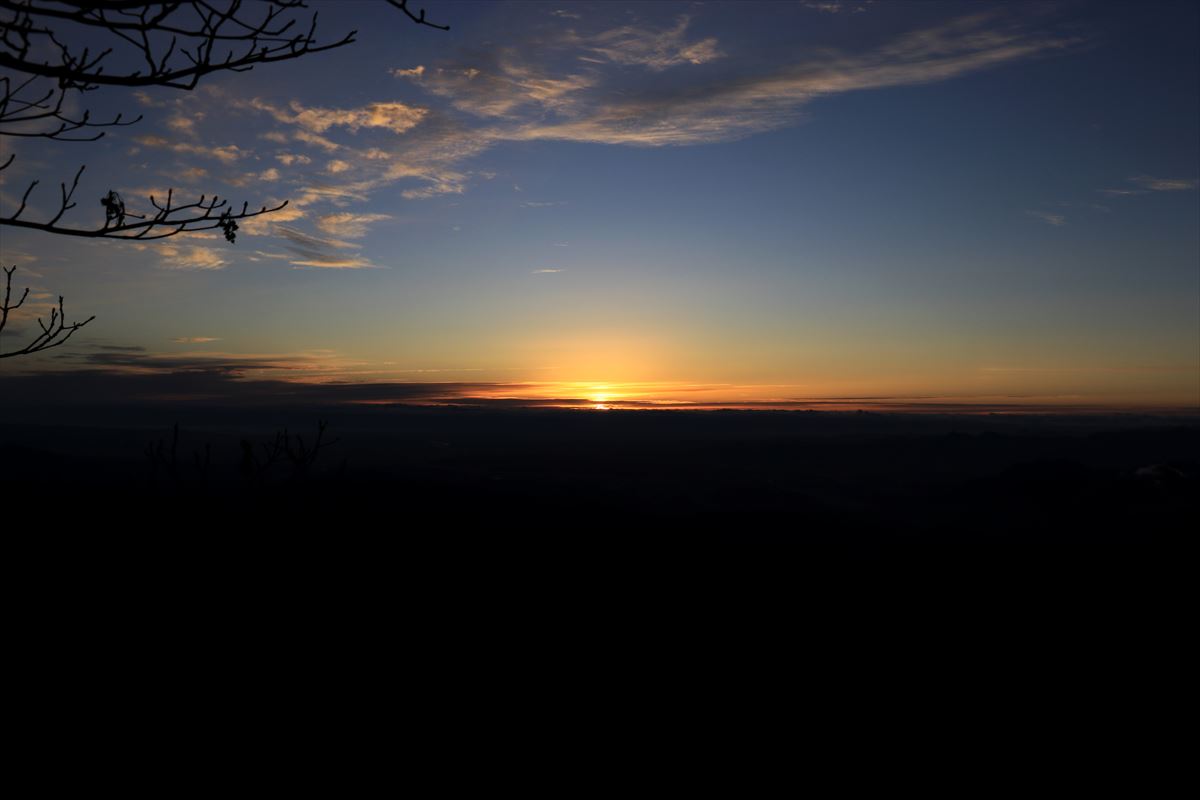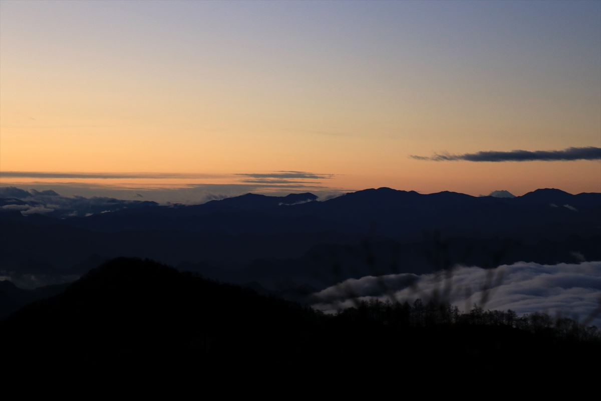この日は浅間隠山の登頂という今回の登山におけるメインとも言える一日でした。鼻曲山にて日の出を鑑賞した後は前日に引き続き尾根筋を氷妻山、獅子岩と辿り二度上峠へ。そこからの少々纏まった登り返しを経て辿り着いた浅間隠山の山頂は評判通りの好展望で暫し景色を堪能。以降は北側に伸びるシャクナゲ尾根経由のコースで一旦浅間隠温泉郷に下山し、そこから更に長野原方面に舗装路上を進み須賀尾峠、そして展望地として知られる高ジョッキに僅かに登り返した所で日が沈んだので行動終了としました。