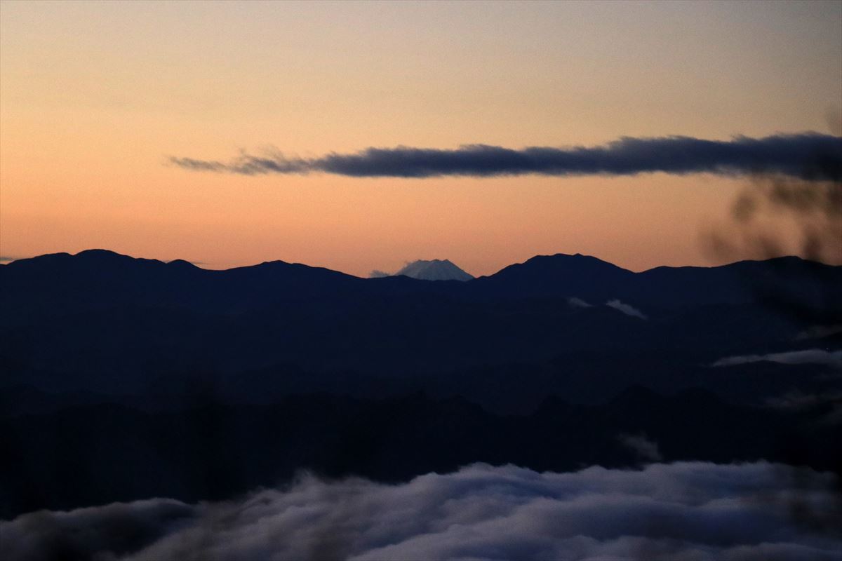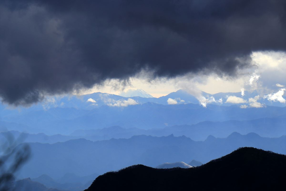 前日は大半が雲に埋もれていた奥秩父山塊の背後、甲武信ヶ岳と北奥千丈岳の間には富士山の頭が見えました。