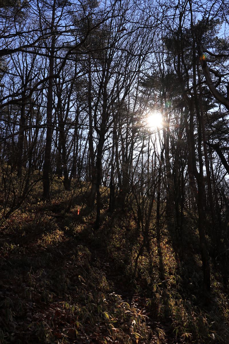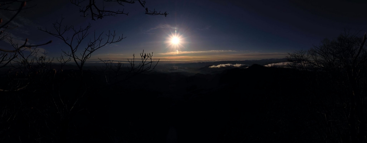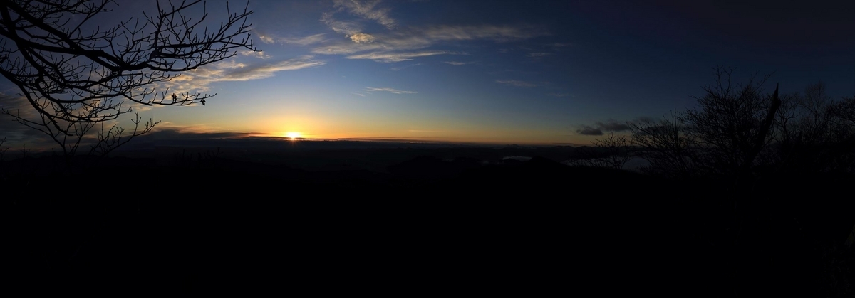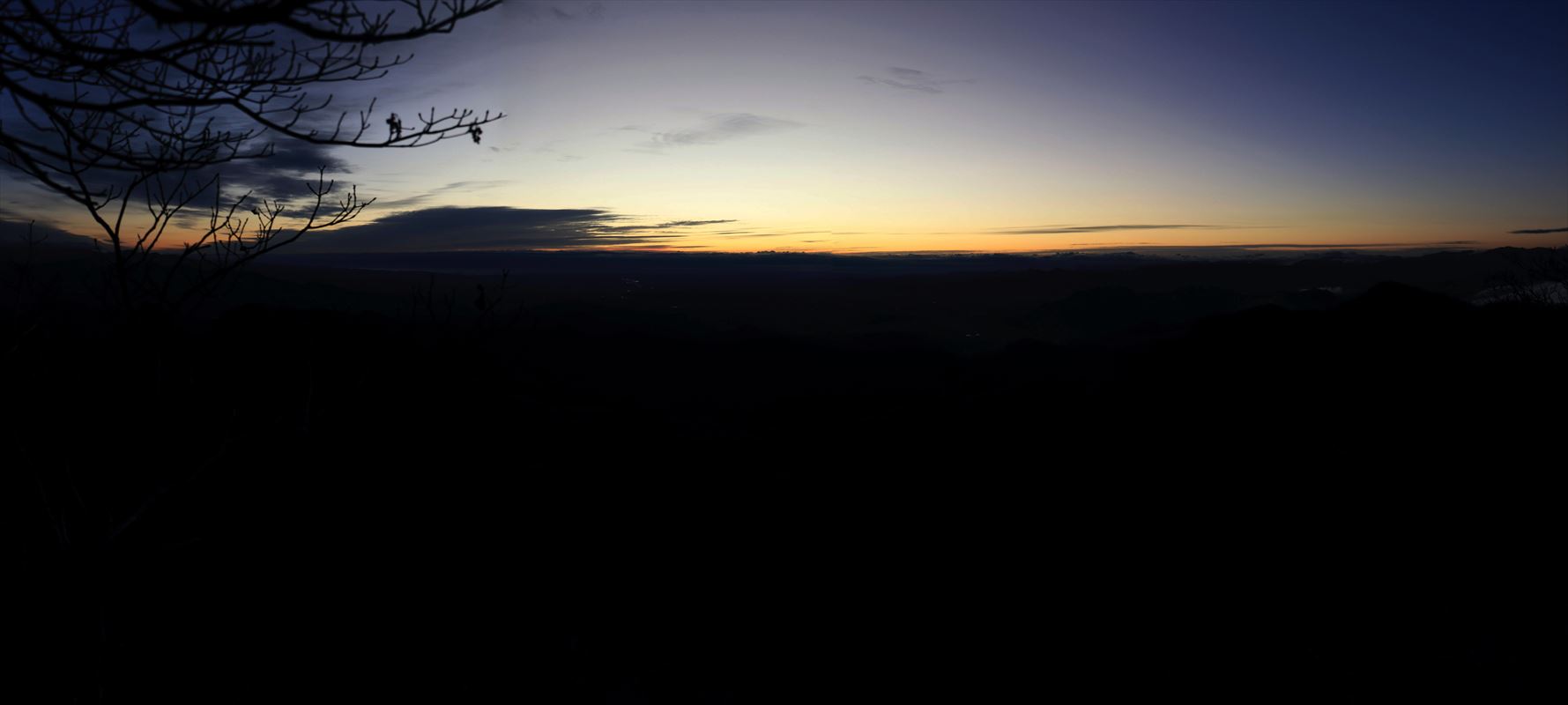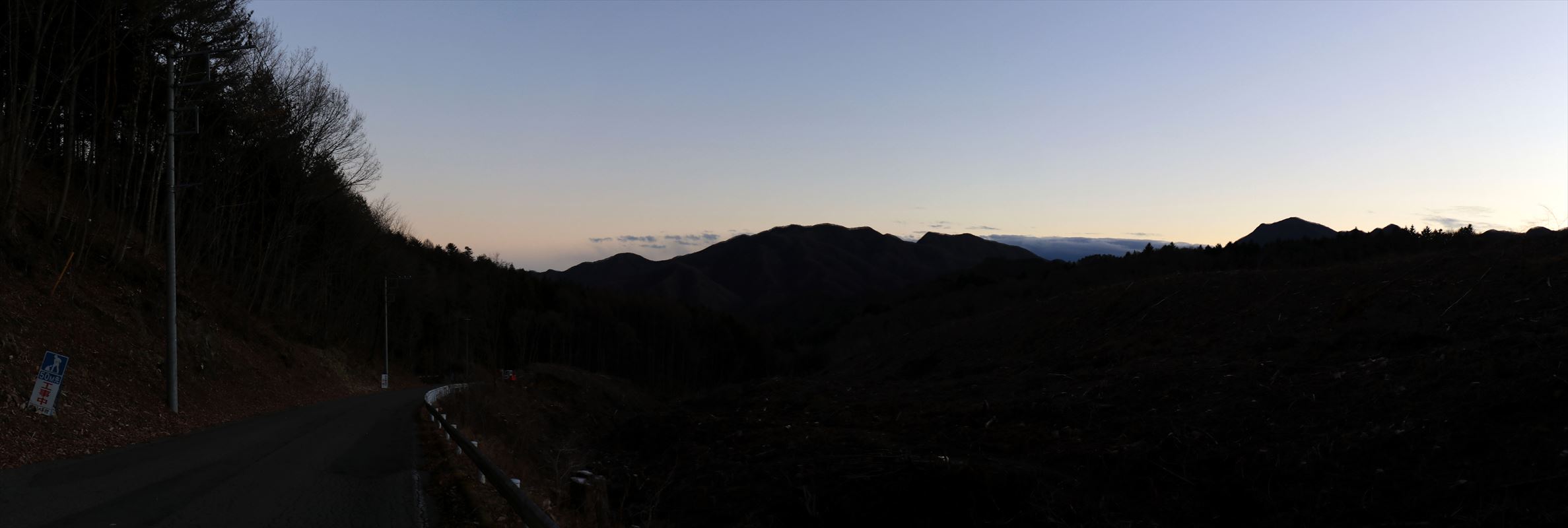 鼻曲山を出発します。サッカー鑑賞に日の出鑑賞、その後は展望を眺めたりしていて遅い時間帯になってしまいました……しかし日の短いこの季節、まだ周囲に人の気配は感じられず。
