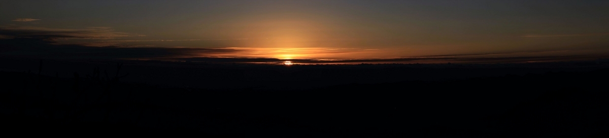 日の出の様子。雲が多いので綺麗な円形には見えませんが、陽光が雲を照らすこうした見え方も最近は好きです。