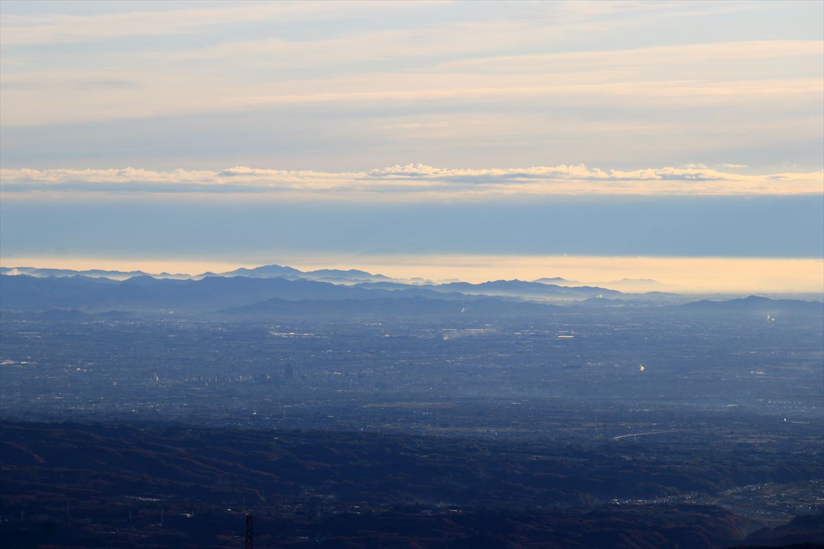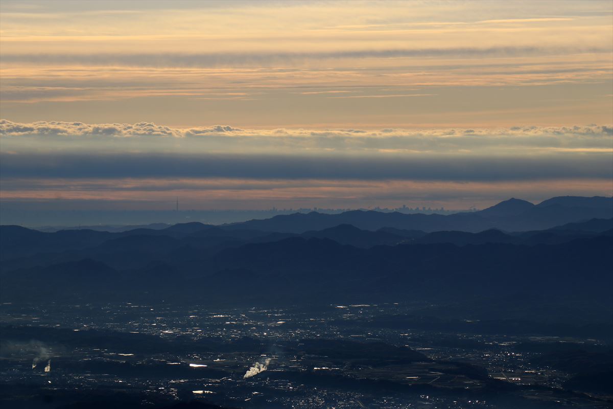 こちらは関東平野の望遠。こちらの方面は意外と雲が多く、本来であれば見えるはずの筑波山はこの時点では影も形もありませんでした。