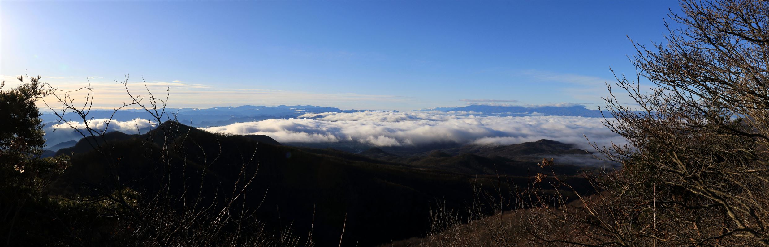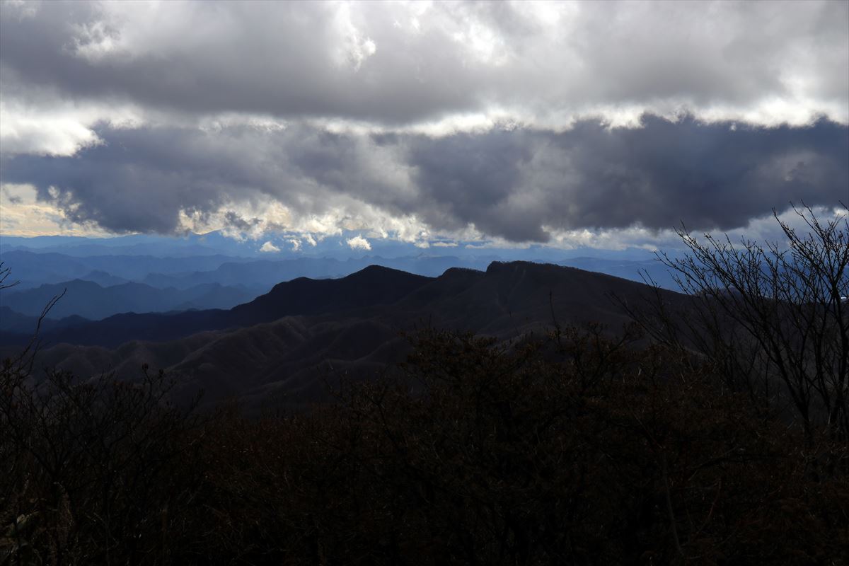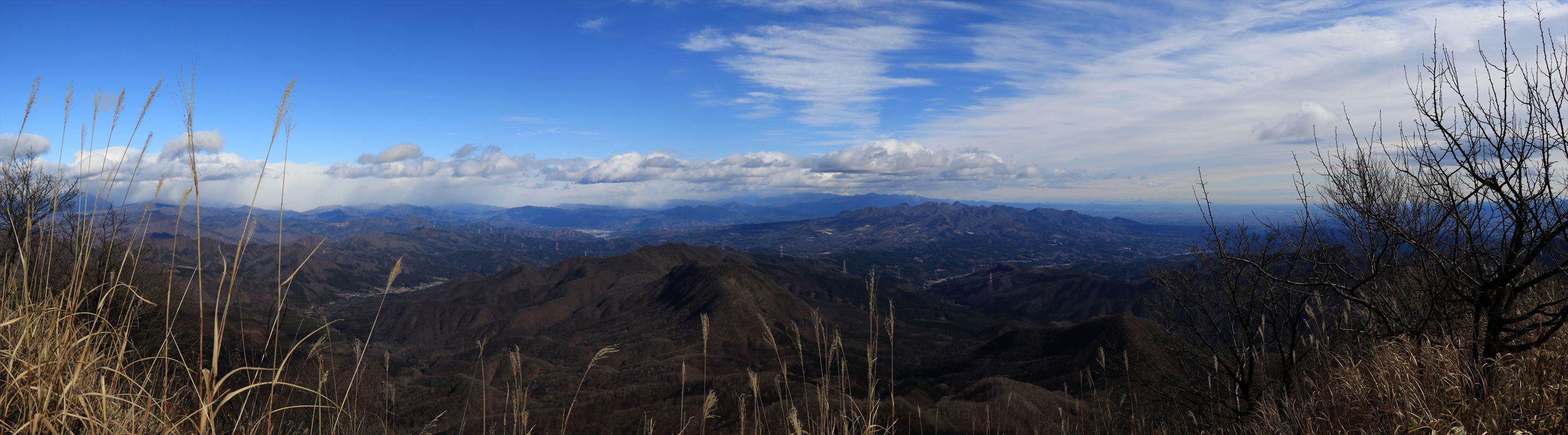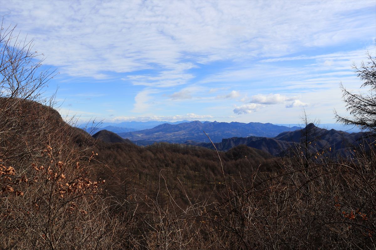 奥秩父山塊や関東平野方面。途中で木の枝が掛かっていますが、この日は主峰と言えるピークの殆どが見渡せました。
