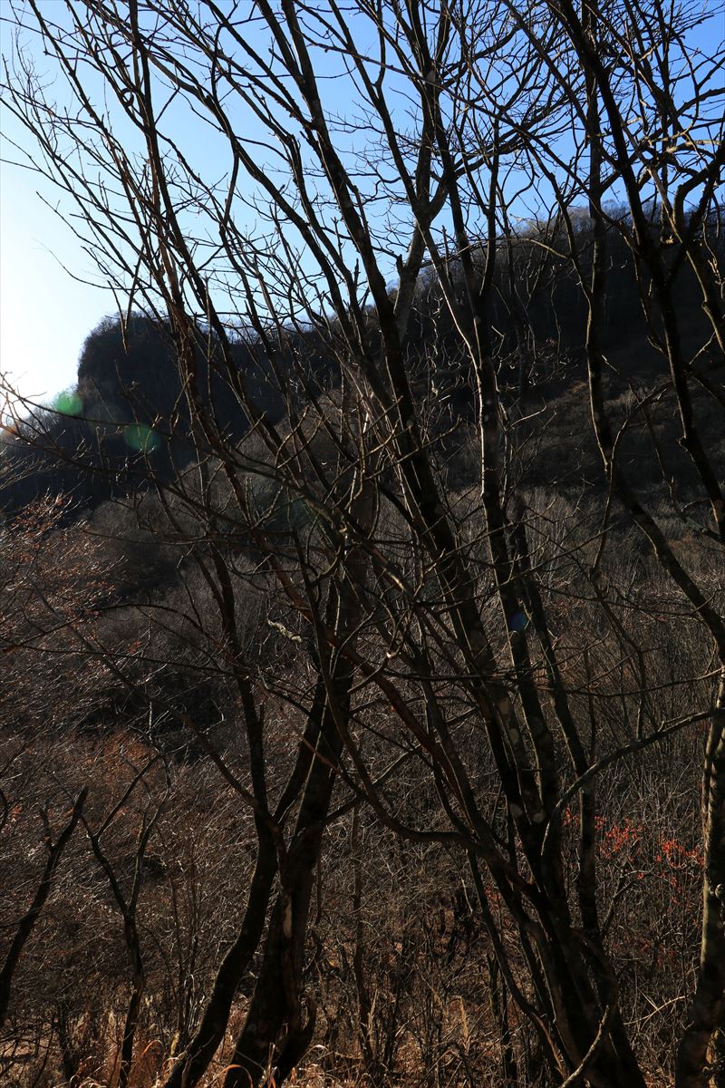 シャクナゲ尾根から先程まで居た浅間隠山を振り返る。既に正午を回った時間帯、東斜面という事で日が差し込まない為か全体的に陰影が濃い。