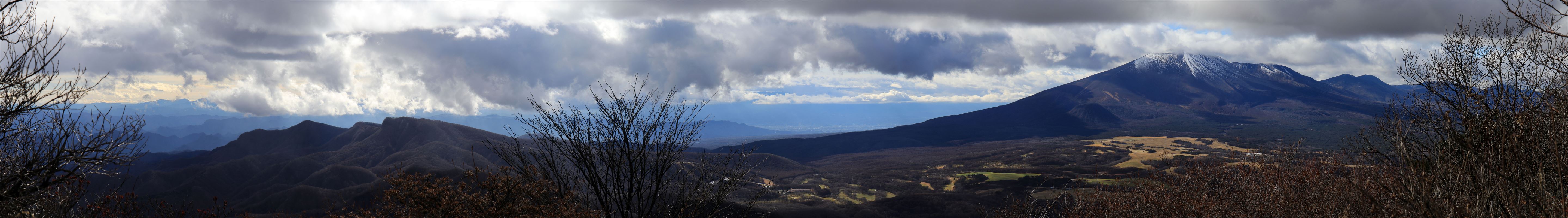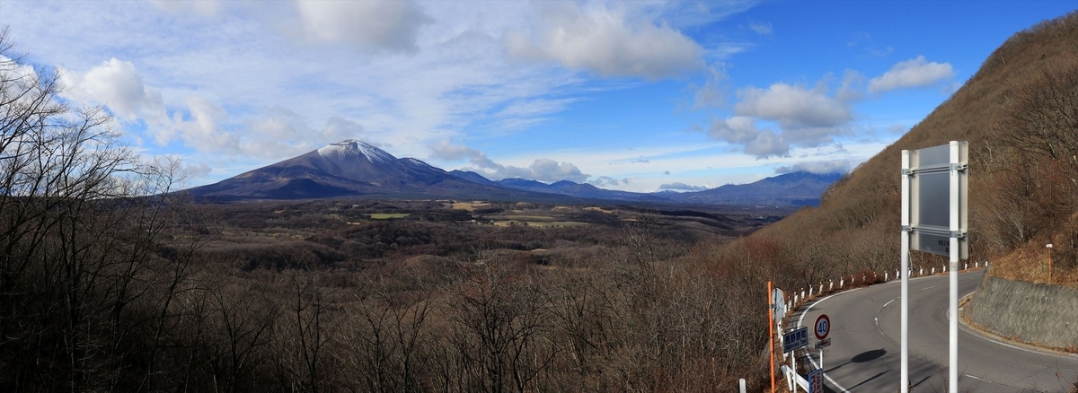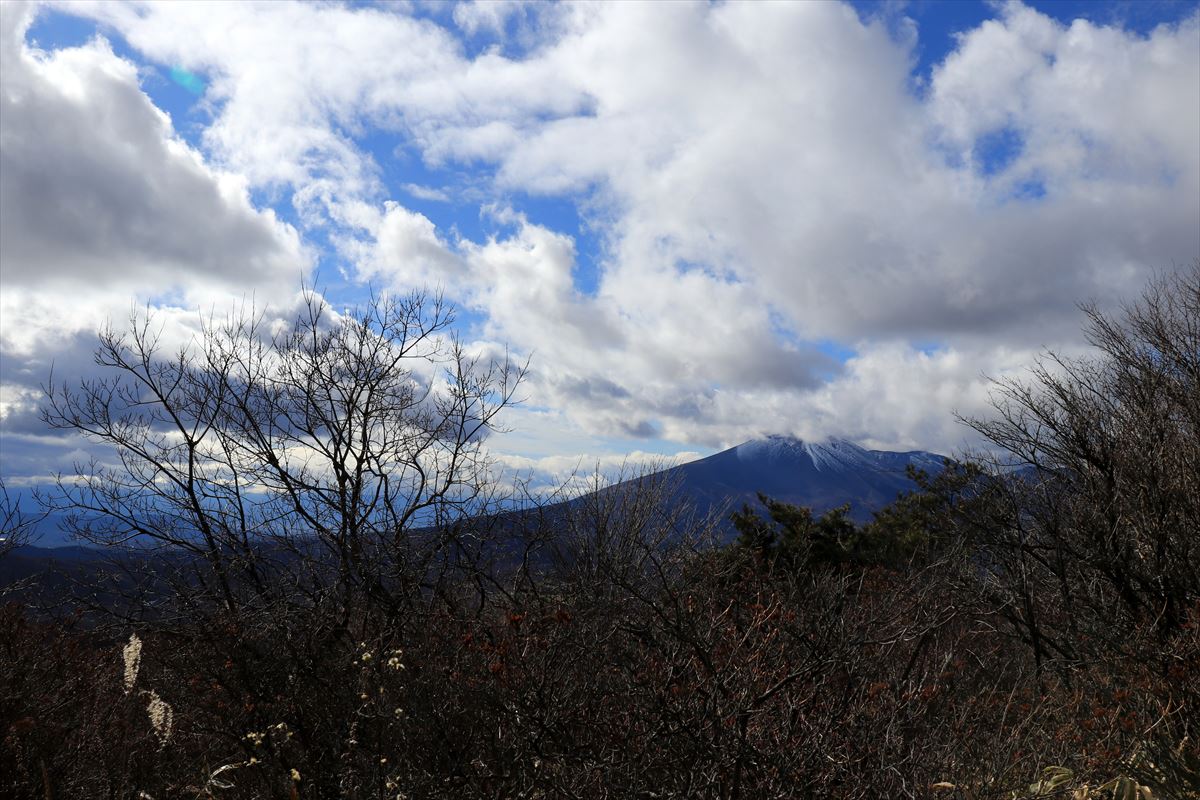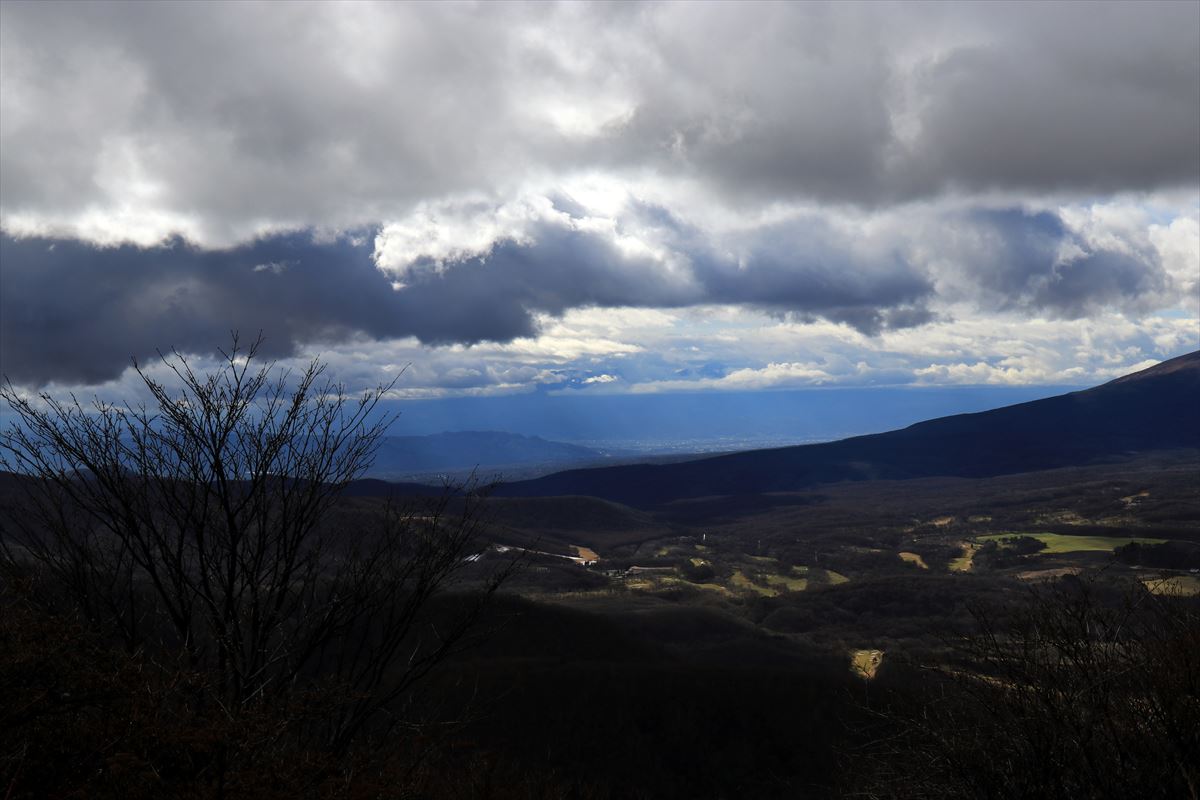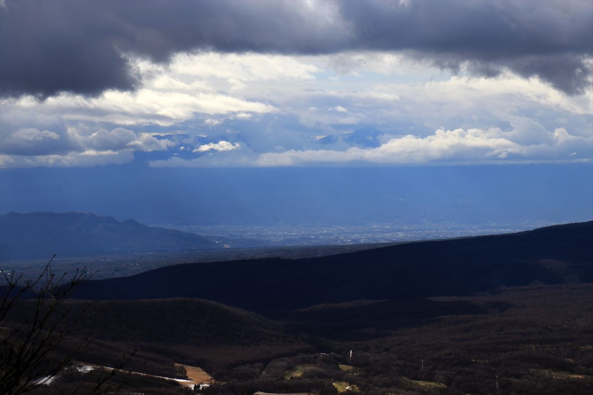 浅間山方面を少しだけ望遠してみたもの。右側には四阿山がありますが、稜線上に雲が掛かっていてピークの判別はできませんでした。