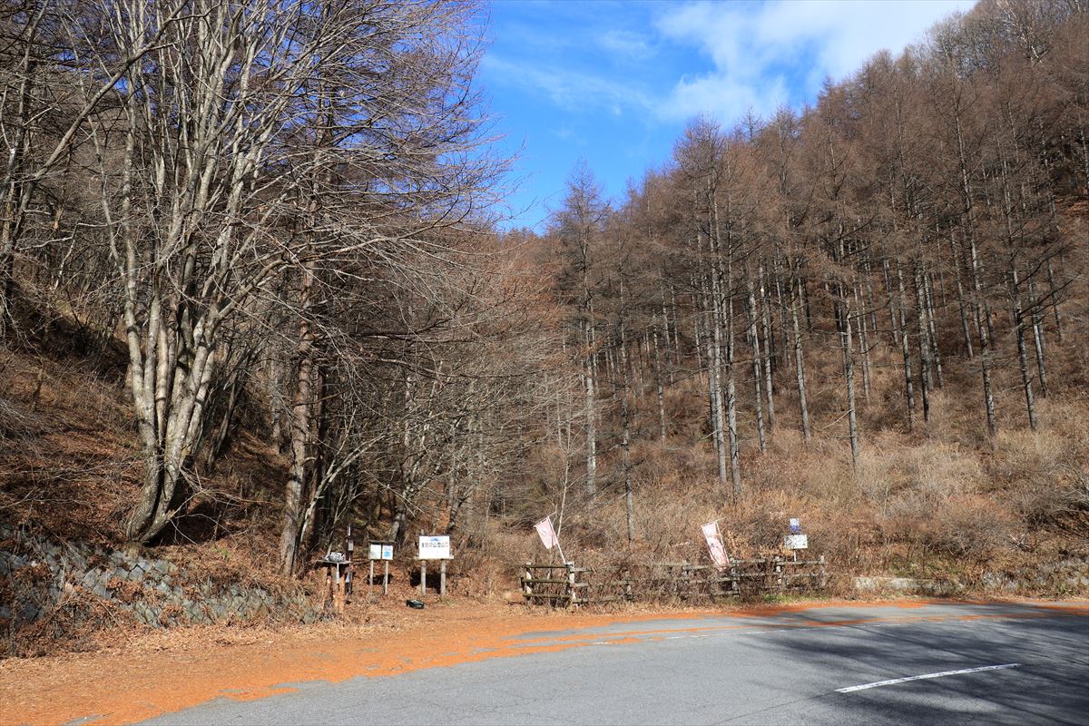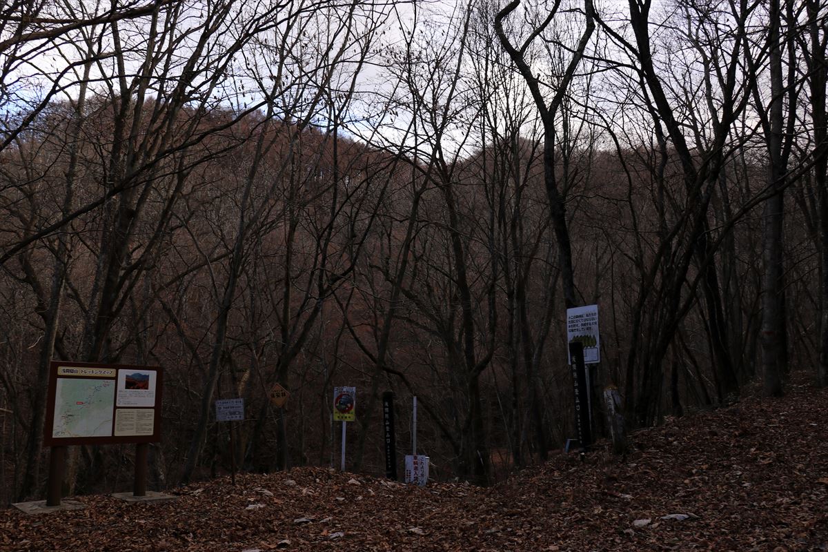 北側の登山口に到着。人気のないコースの割には立派な案内看板が設けられている。紅葉の季節はそれなりに人が入っているのでしょう。