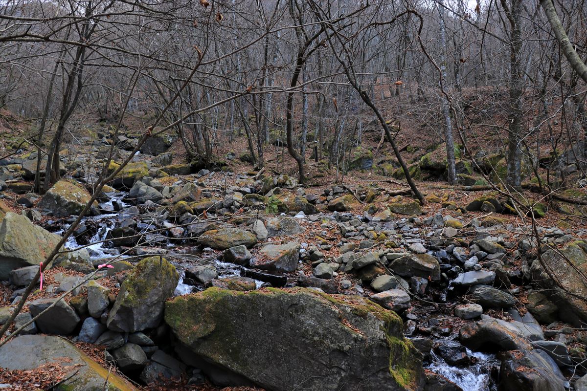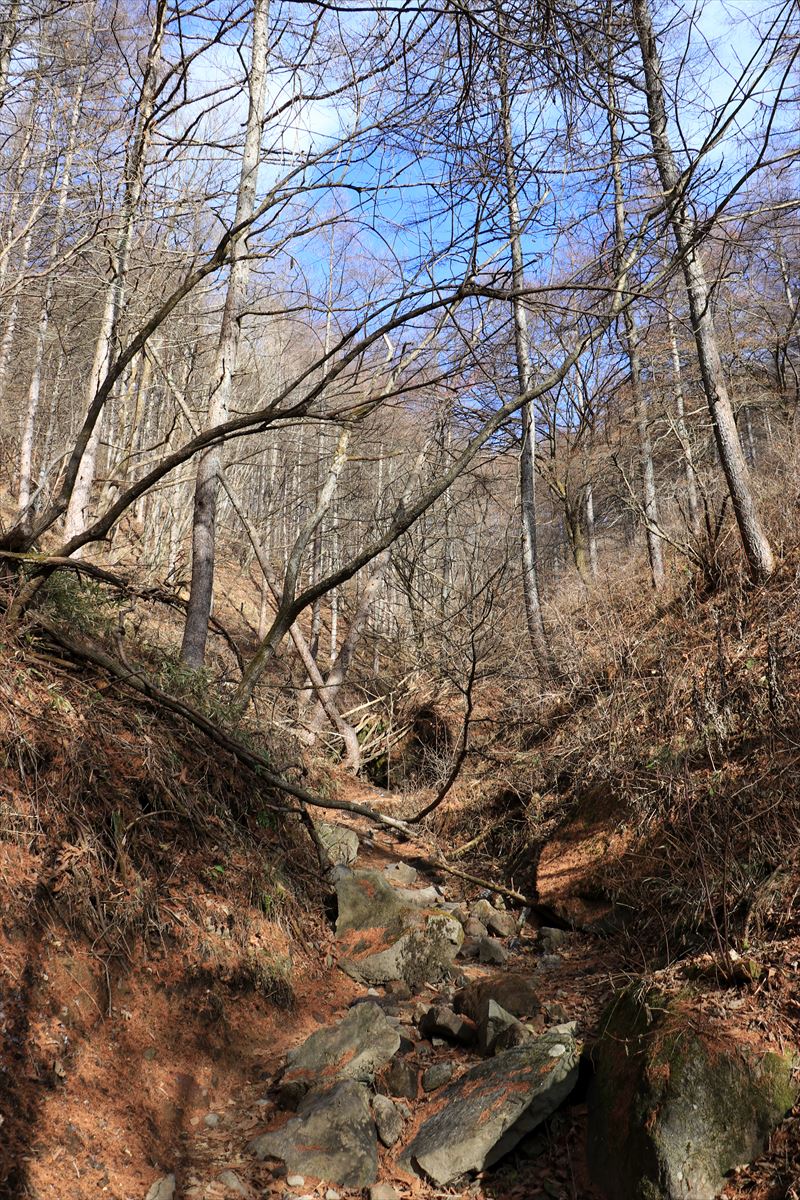沢沿いに下った後の道の様子。何度か渡渉がありますが、水の少ないこの時期なのでどこも容易に渡れました。