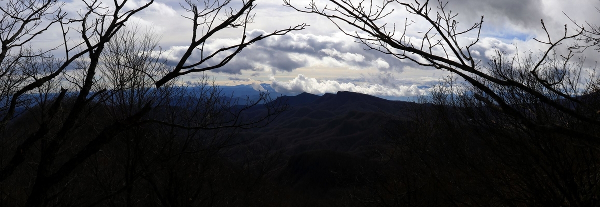 こちらは北東側の上州武尊山……が見えると思われる方面ですが、こちらは雲が多く山の形がうっすらと見える程度。