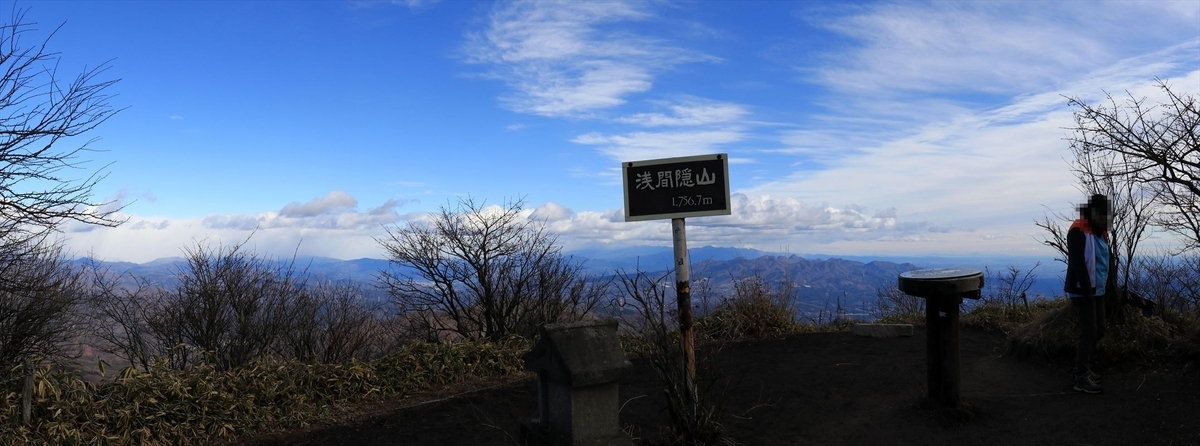 こちらは浅間山や鼻曲山が見える南西方向の展望です。浅間山は二度上峠の時点では完全に見えていたので、登頂がもう少し早ければ……と悔やむ所。
