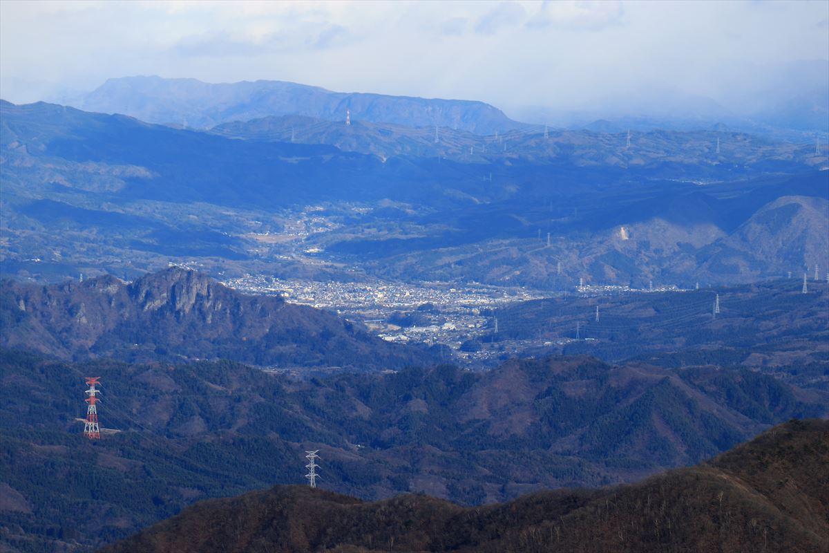 妙義山の岩峰群の奥には奥秩父山塊の雲取山と芋ノ木ドッケの並びが見えました。