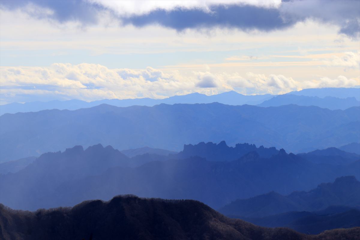 奥秩父山塊西側の望遠。北奥千丈岳の右側には金峰山や小川山、御座山等が見える。