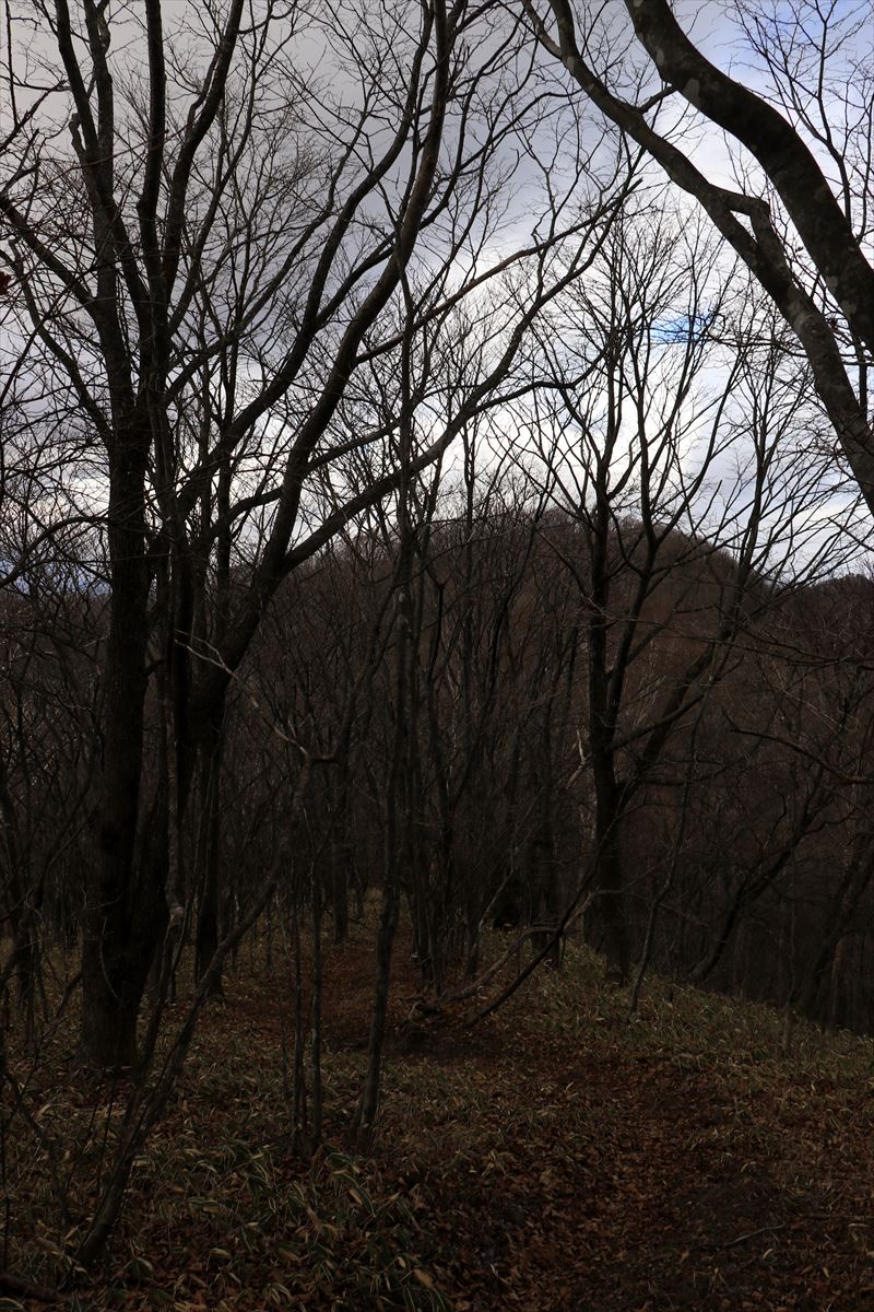 1607mピークとの鞍部から主稜線を外れて支尾根を進んでいきます。シャクナゲ尾根とはこの支尾根の事を指すらしい。