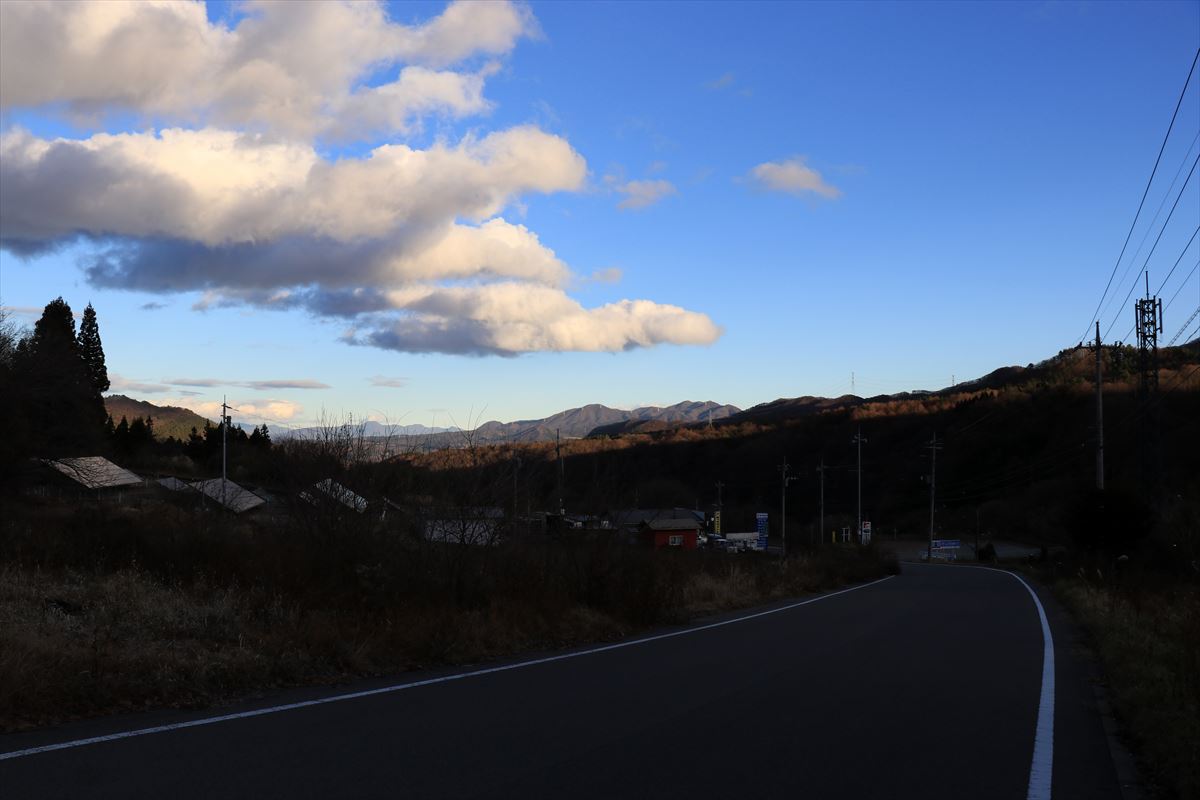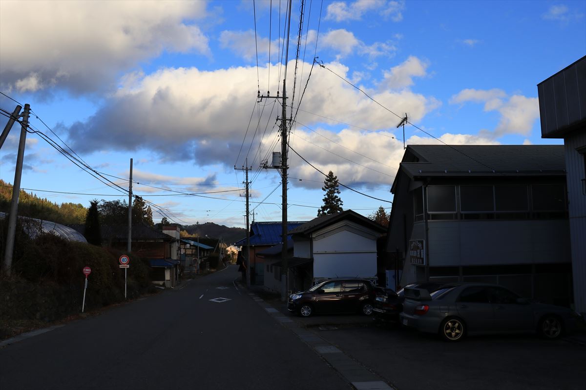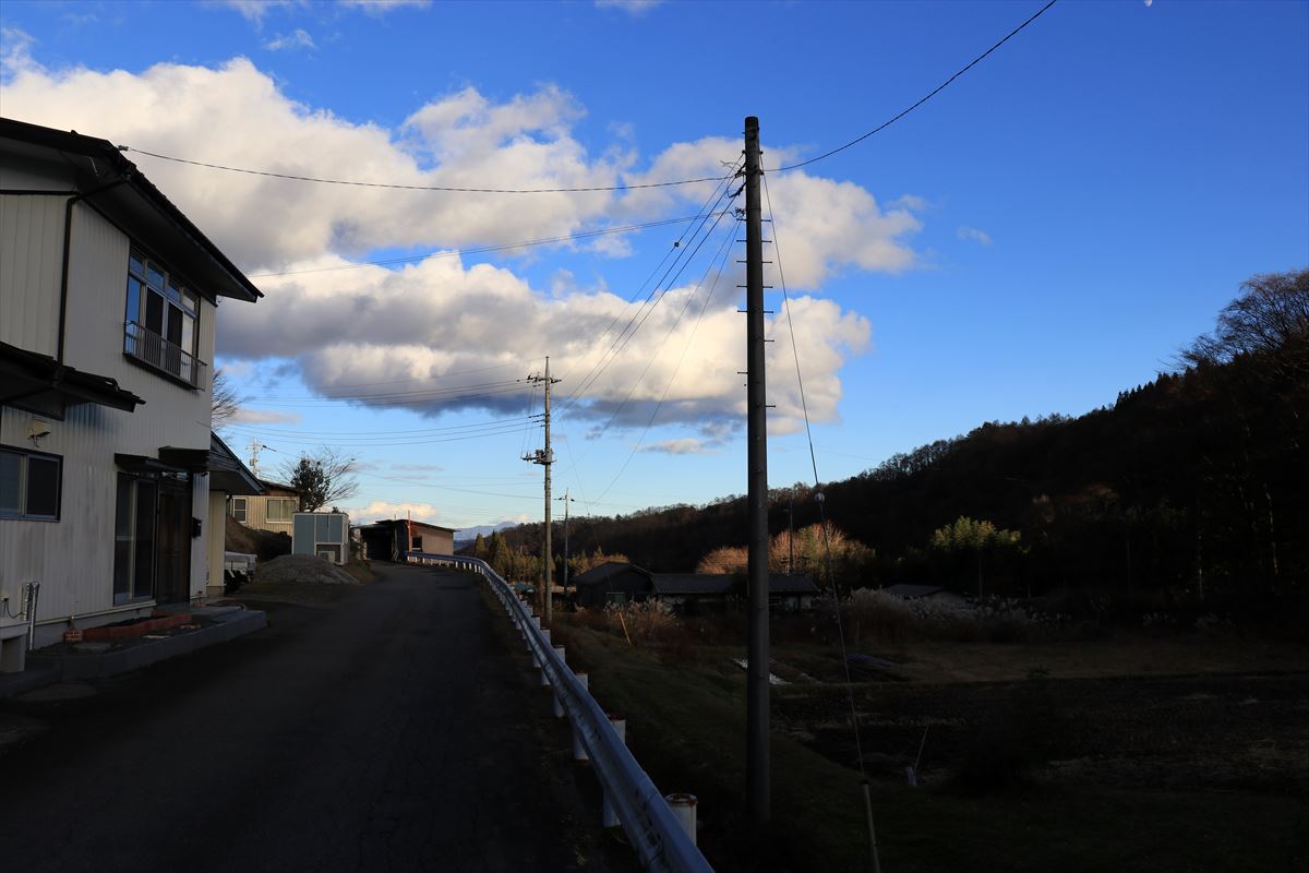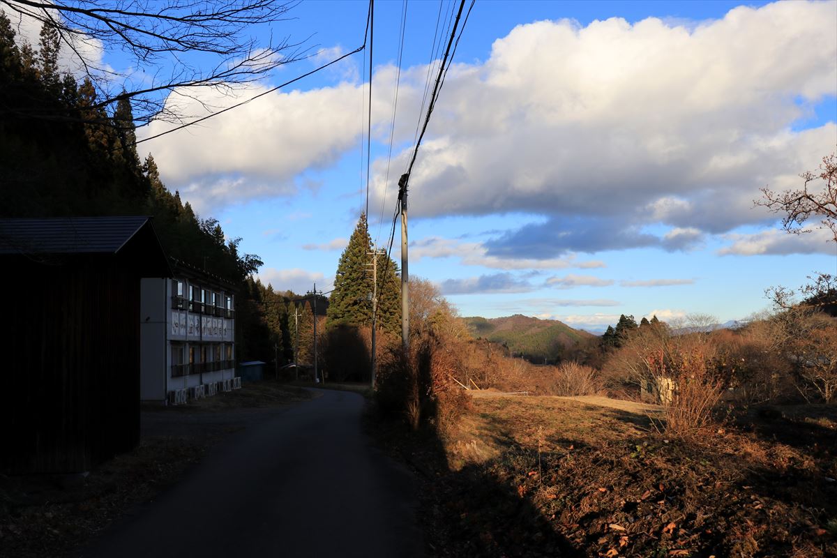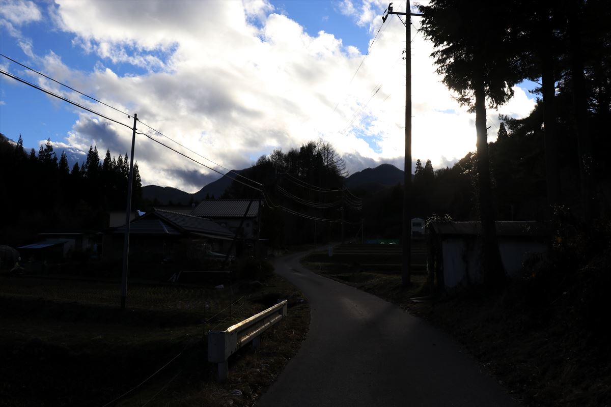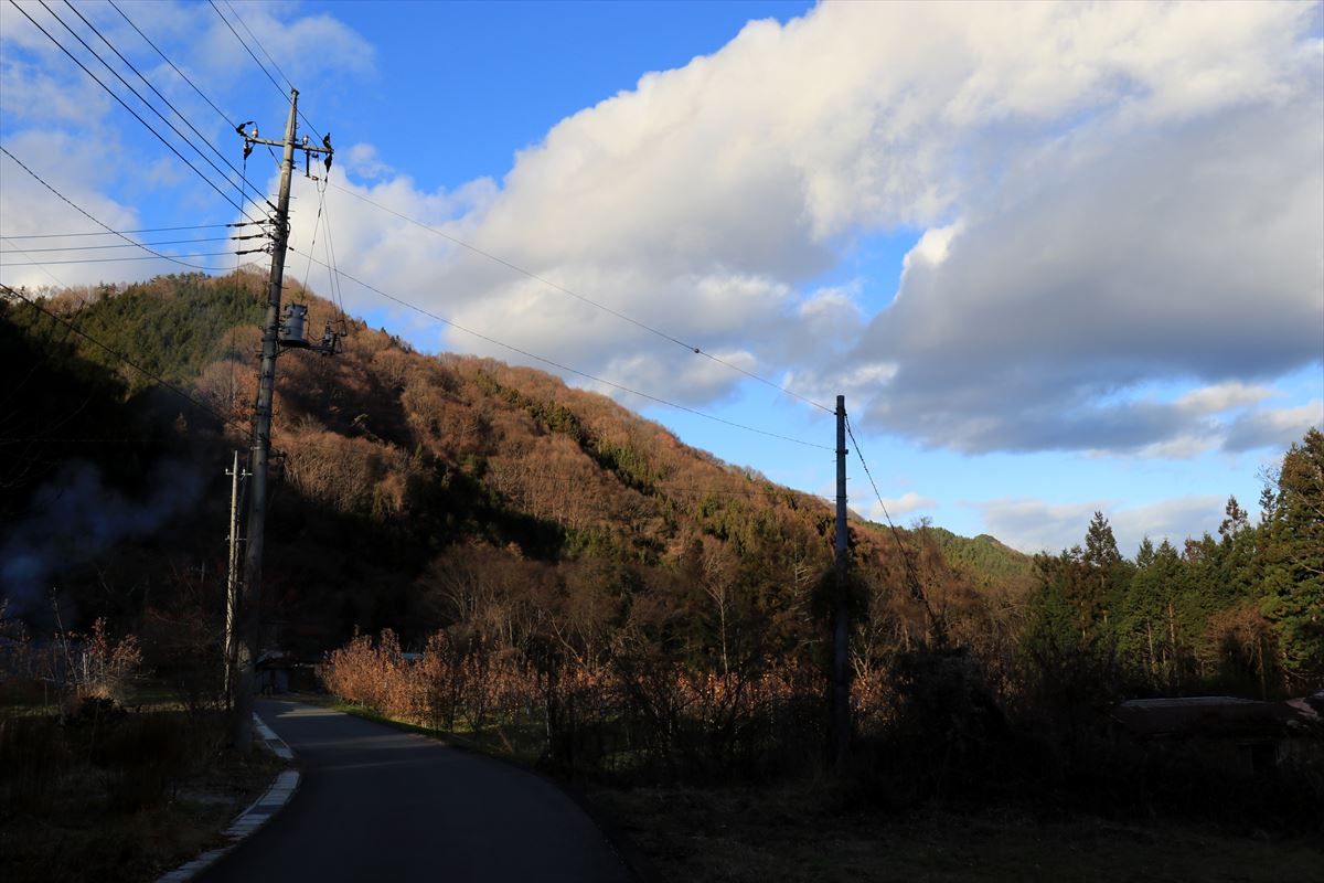 不動ノ滝を越えた頃には周囲の山も一層低くなり、家並みも増えてきました。集落の中心が近付いてきたようです。