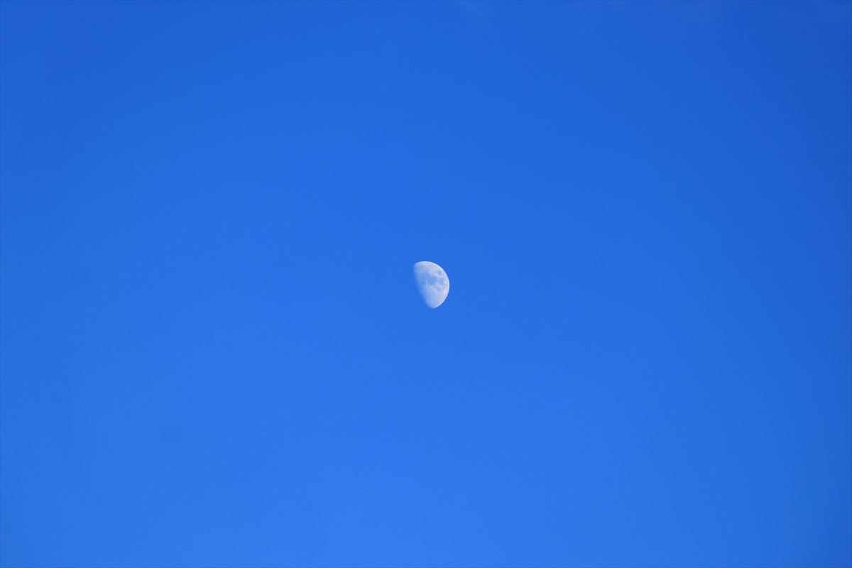 日没までまだ少し時間がありますが、見上げればくっきりとした月が見えました。