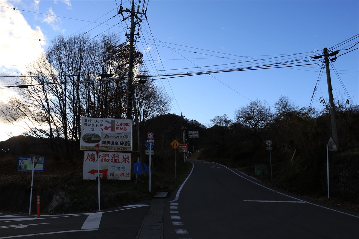 左が清水集落のメインストリートで、すぐ左の所にはバスポールが立っています。そのまま道なりに歩けば東吾妻町の坂上集落(旧坂上村の中心)や吾妻線の郷原駅まで行き着くのですが、麓の道路を延々と歩くのも面白味がないので、今回は峠道を北上して須賀尾峠を越え、長野原草津口駅に向かう事に。その途中に高ジョッキという展望の優れたピークがある事も決め手の一つでした。