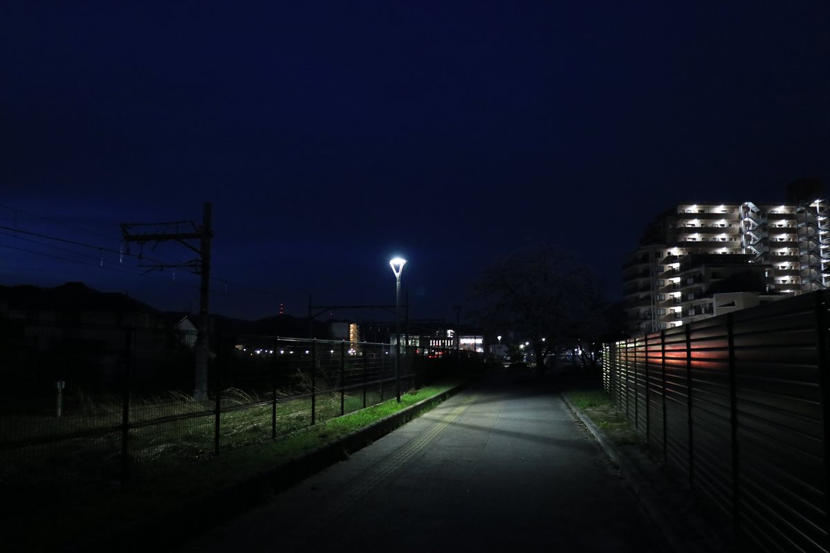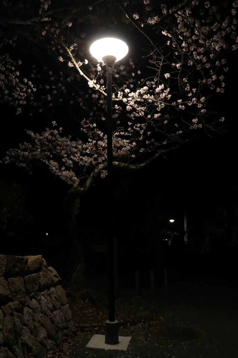 この日は西舞鶴、田辺城の夜桜からスタートです。小浜線の始発に合わせて出発したのですが、まだまだ夜の延長線とも言える時間帯のようで辺りは暗闇に包まれていました。
