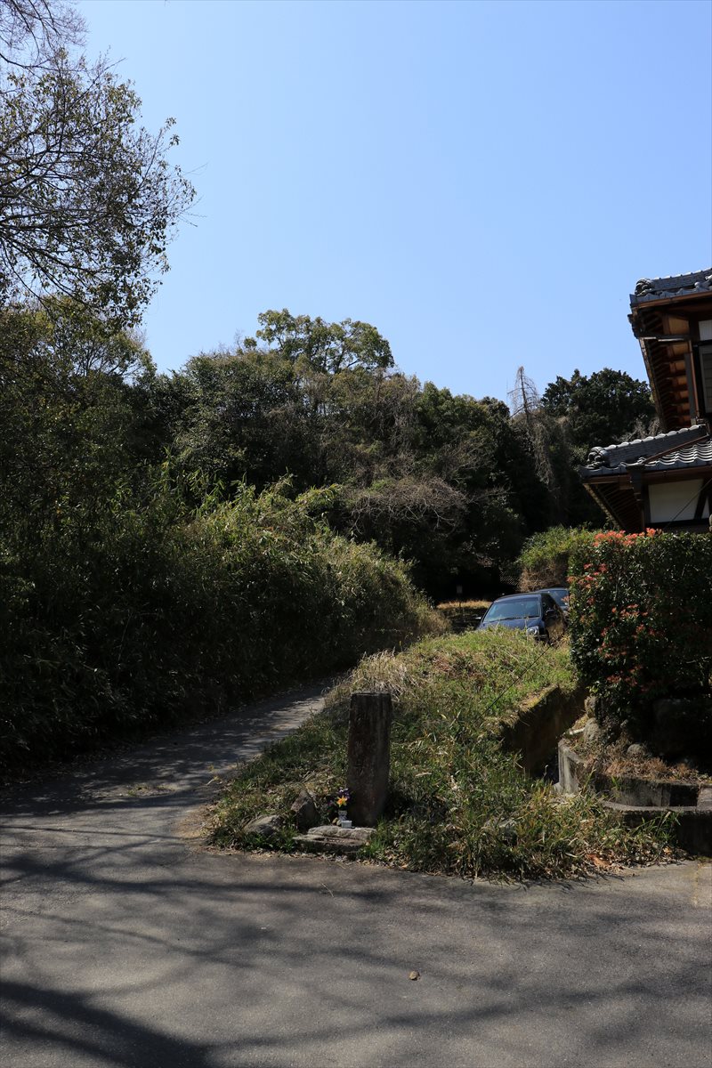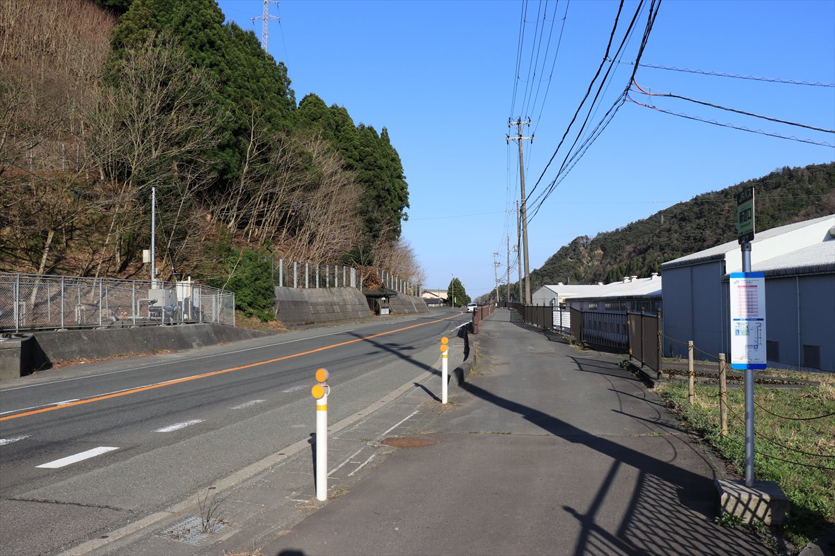 上中駅から若江線のバスに乗って10分程度進んだ先の新道口のバス停にて下車しました。一見すると周囲に何もなさそうなバス停ですが。