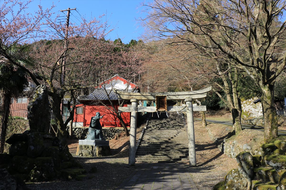 白石神社と中ノ町の街並み。こちらの神社は室町期に築城された熊川城の跡地に鎮座しています。