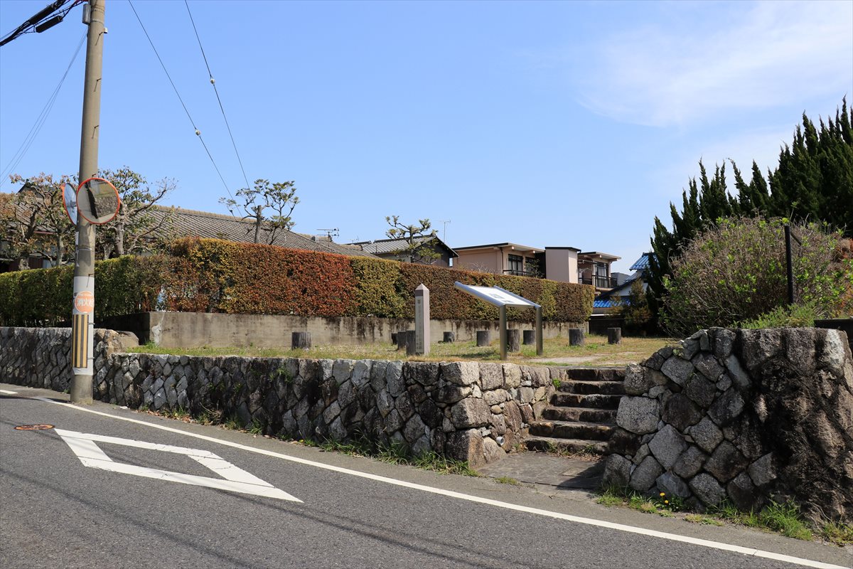 案内板には熊川宿、小浜方面に伸びる九里半街道の起点と記載され、その解説があります。実際に九里半街道が西近江路から分岐している地点はもう少し西に進んだ先ですが、若狭を始めとした日本海側から輸送されてきた荷物の多くは大津方面に向かう船に載せ替えるべくこの場所まで運ばれていたので、実質的に街道の起点とされていたのでしょう。(実際、九里半街道の名称は今津港から小浜港までの距離が九里半という事に由来しています)