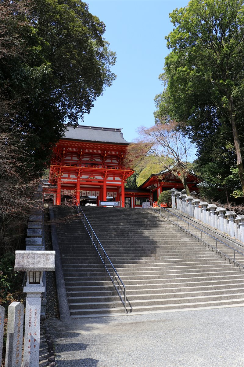 観音堂から下った所にある長等神社。天智天皇が近江大津宮に遷都した際に鎮守として建速須佐之男命を祀ったのが発祥で、後に円珍により三井寺の鎮守として山王権現が合祀され、延暦寺の鎮守であった日吉神社に対してこちらは新日吉社と称していたという。