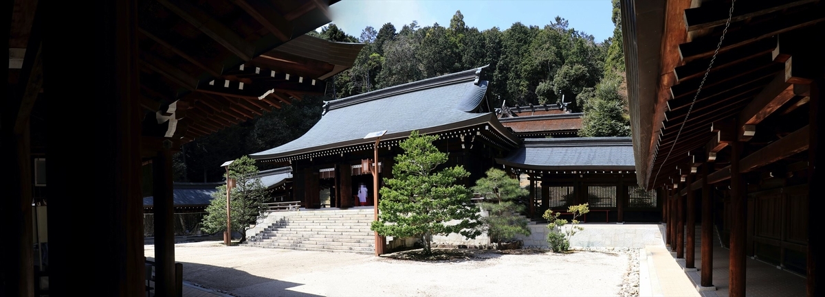本殿は背の高い門塀に覆われており、内部の社殿は隙間から僅かに覗ける程度でした。
