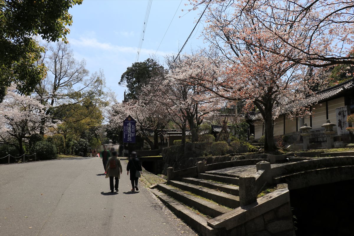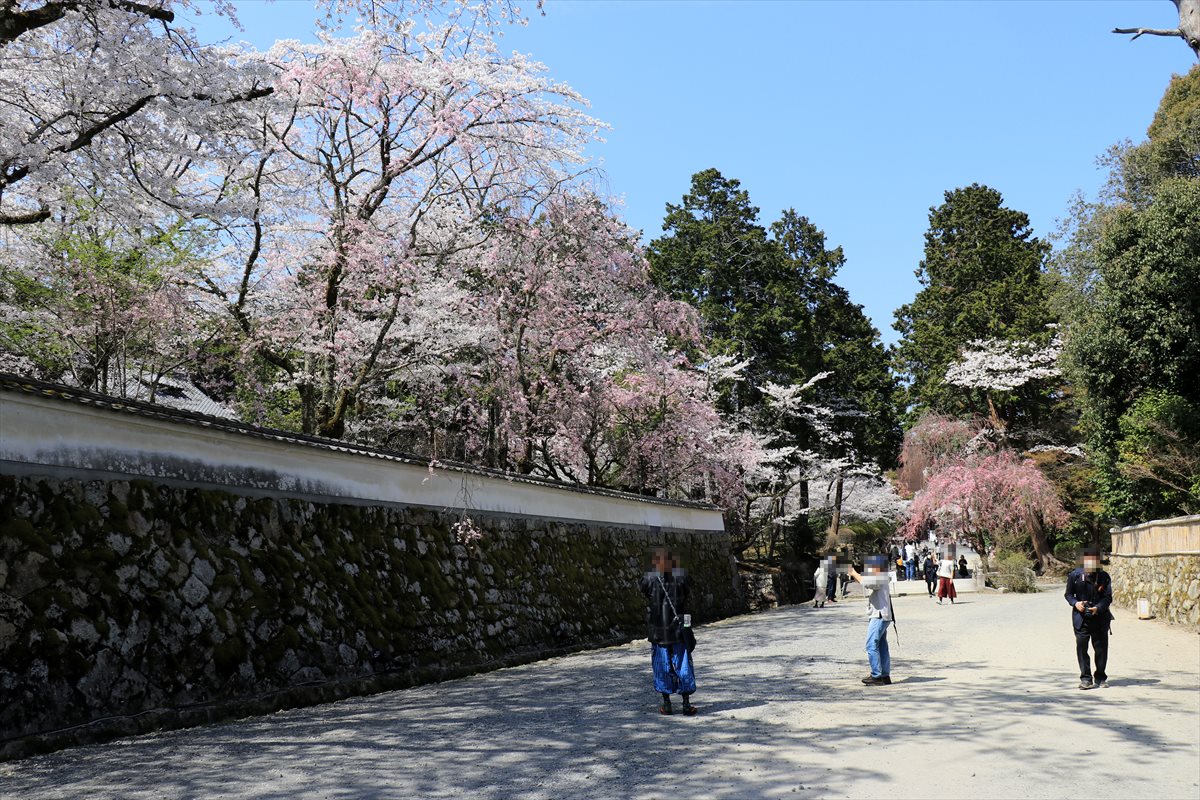 三井寺は桜の名所でもあるらしいですが、勧学院の塀の付近は特に桜の密度が一際高く、多くの人が足を止めていた。