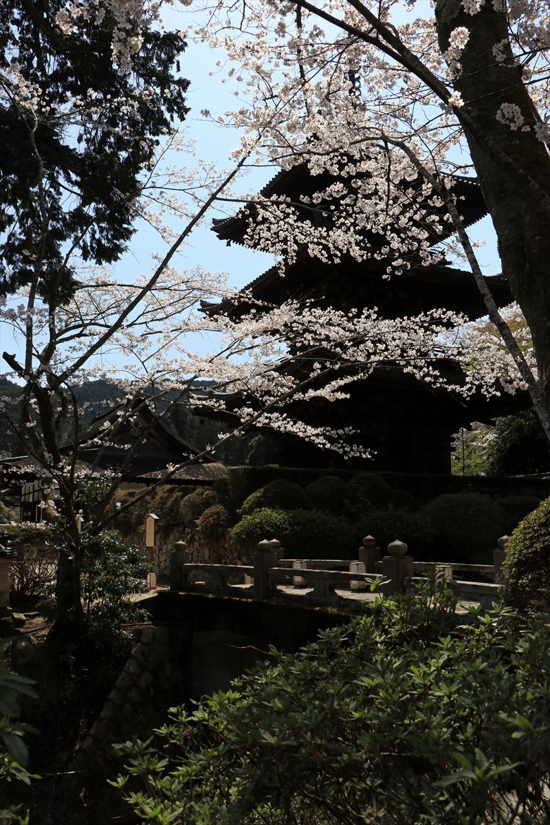 一切経蔵から橋を渡った所には三重塔が見えます。