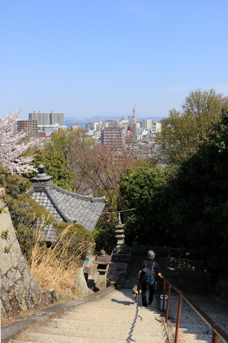 急な石段を下り、麓に広がる大津の市街地へと向かいます。