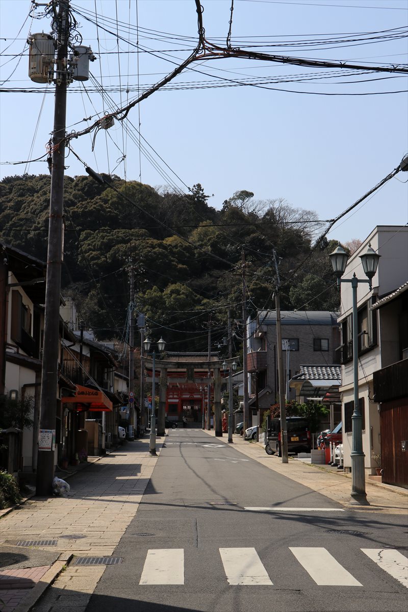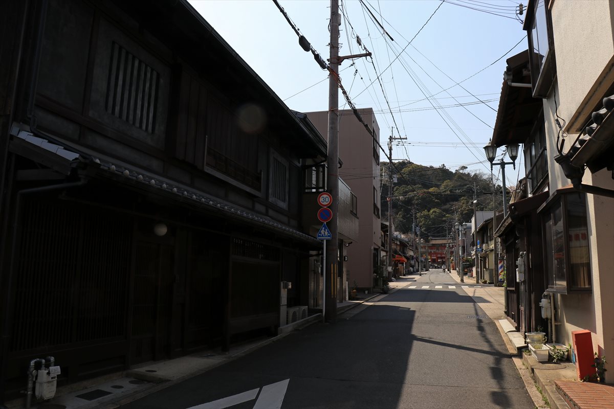 かつての小浜藩の御蔵屋敷跡に建てられた松木神社の参道。中ノ町には神社仏閣が集中的に置かれており、神社はいずれも山の方に向かって参道が続いています。