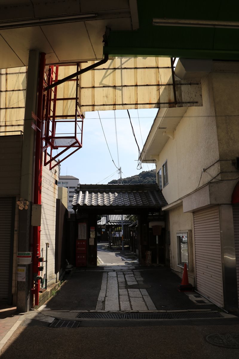 アーケードの途中から分岐する本要寺の参道。