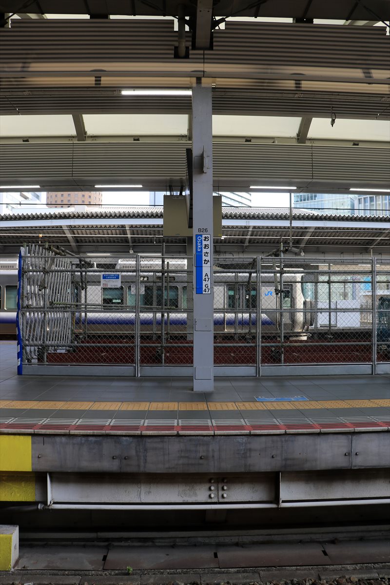 車窓から大阪駅……去年通った時も似たような写真撮った気がする。今回もスルーしてそのまま西へ。
