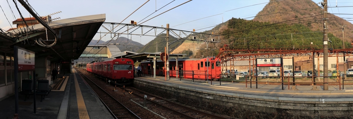 播但線は姫路駅から寺前駅までの区間は電化されていて電車での運行ですが、以降は和田山駅まで非電化で気動車での運行なので、乗り通す際は運行上の境界となるこの駅で乗り換えとなります。