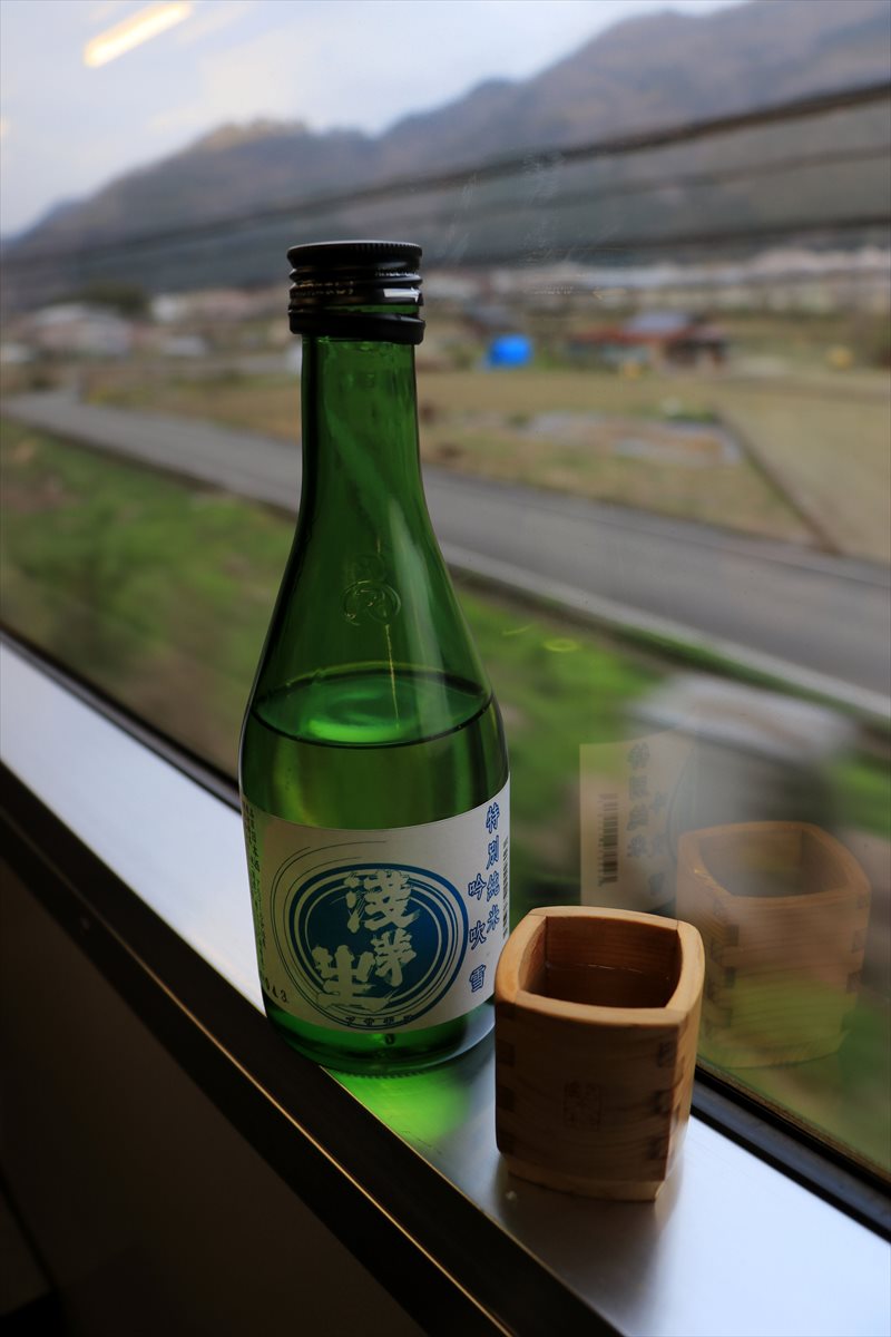 播但線の車内で先程購入した浅茅生を口切り。味見してみた所、概ね自分のリクエスト通りの味わい。若干辛めで骨太な印象ですが、全体的に清涼感を覚える独特の風味。最後の切れ具合は上々といったお酒でした。
