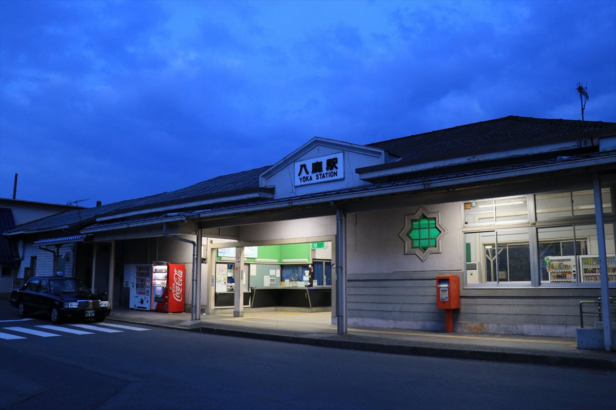 和田山駅から2駅先の八鹿駅で下車しました。養父市の中心となる八鹿の市街地に面した駅ですが、この時間帯は既に窓口のカーテンが閉じている。