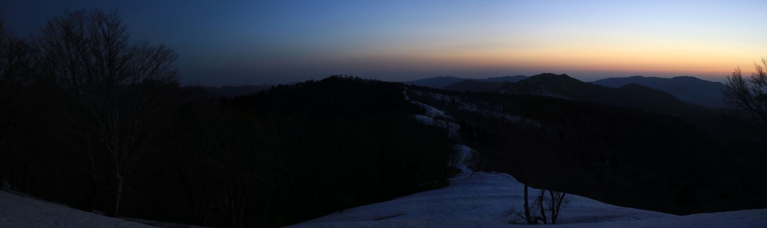 暗闇の中を突き進んでいきます。コースは概ね稜線上に取り付けられていますが、巻いていたり残雪に埋もれていたりするので見失いがち。一度ロストして藪を漕いでしまった。