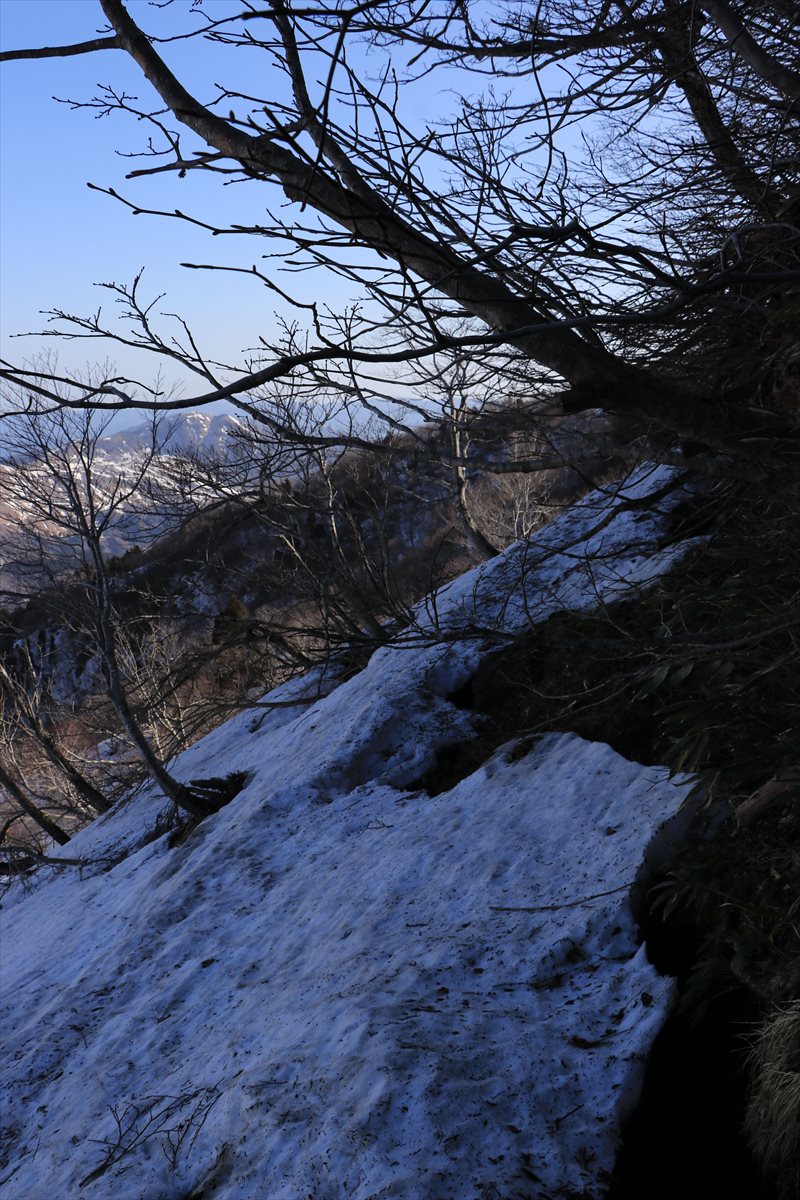 山頂近いこの付近は流石に積雪量も多めです。完全に冬山の様相。