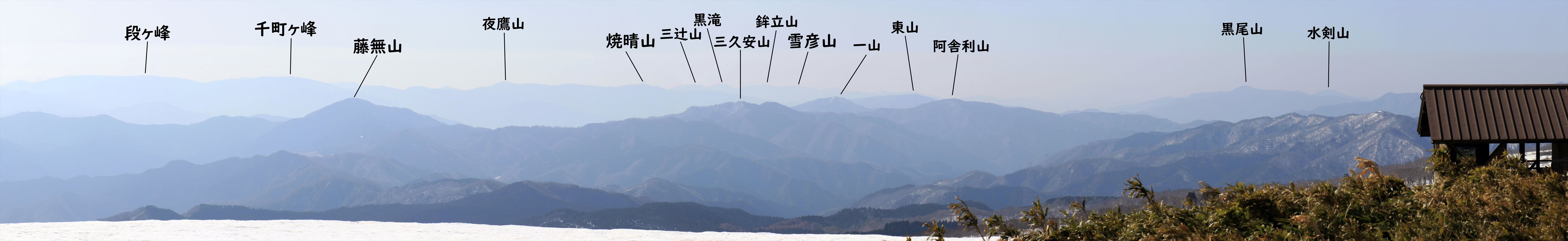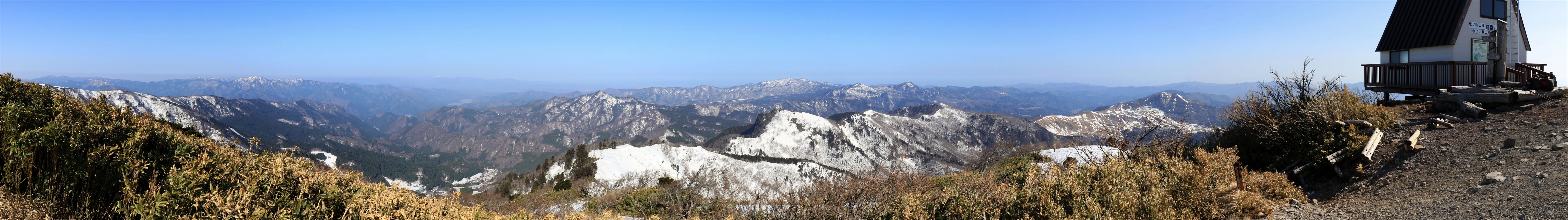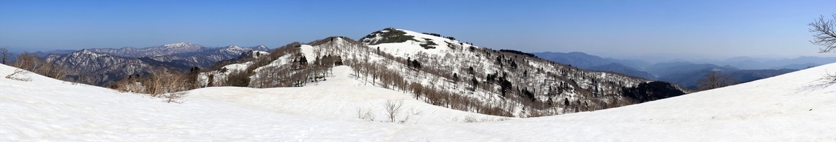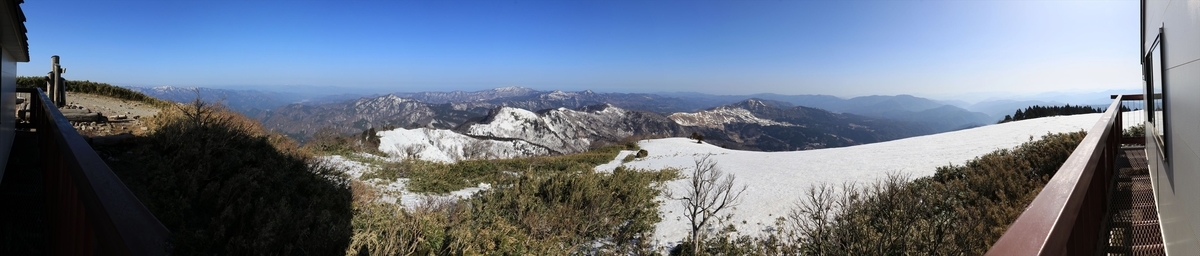 氷ノ山方面の展望を若干広い範囲で繋いでみたもの。