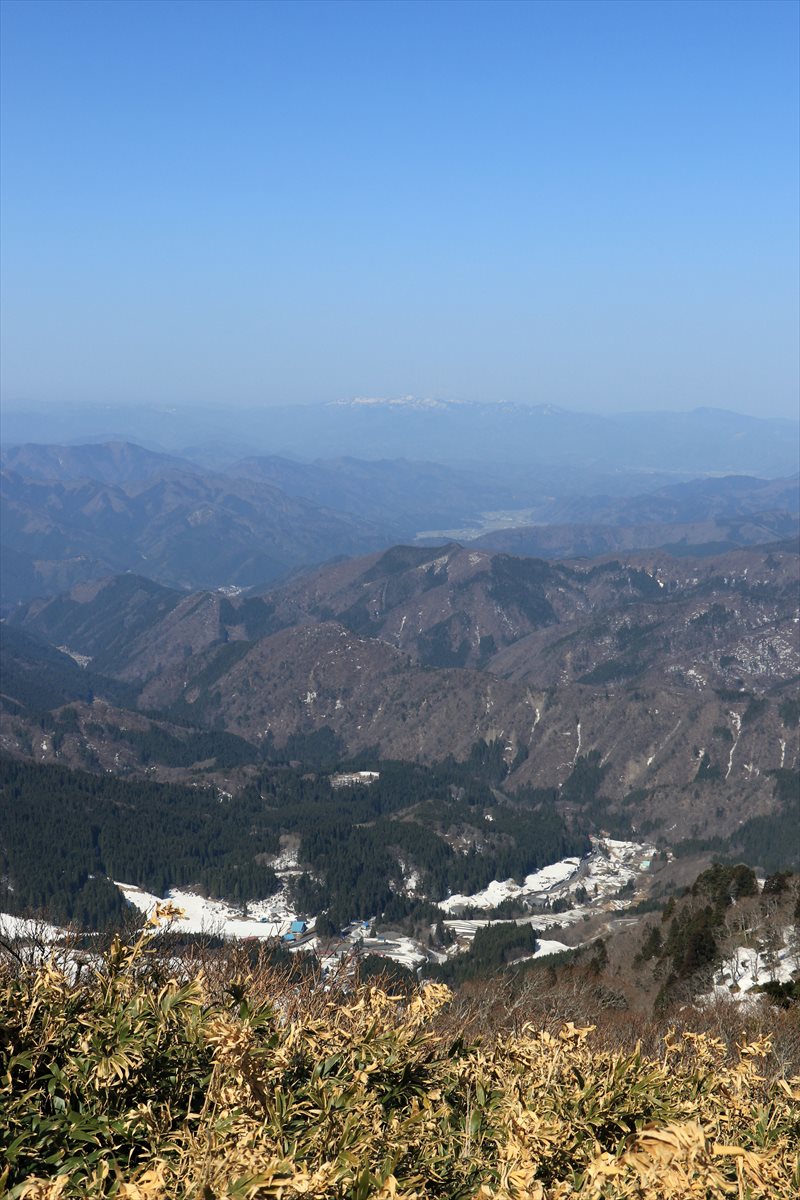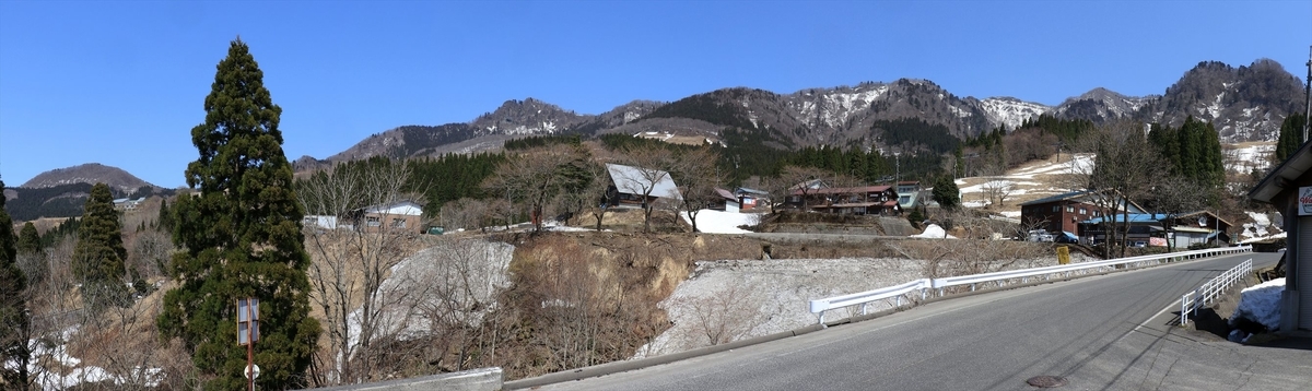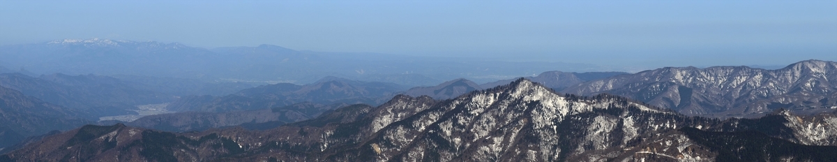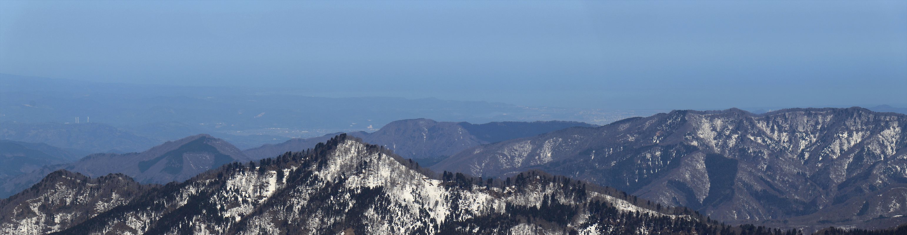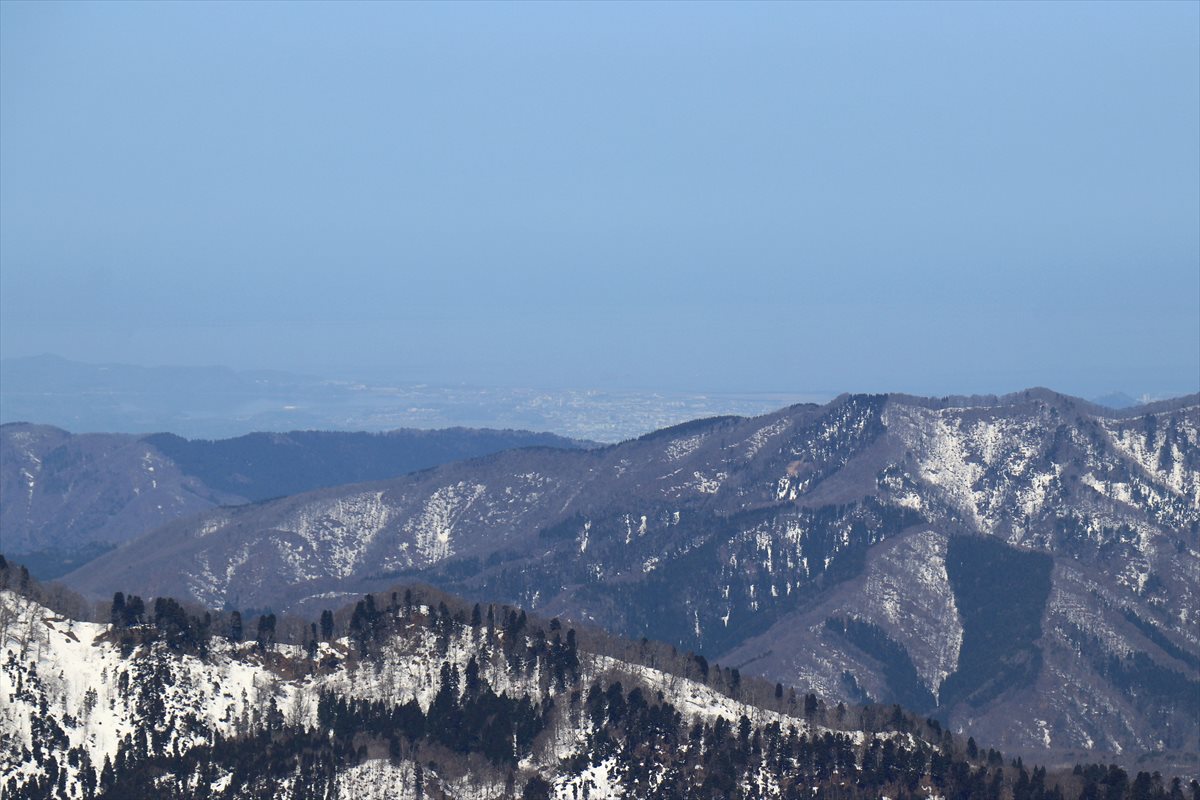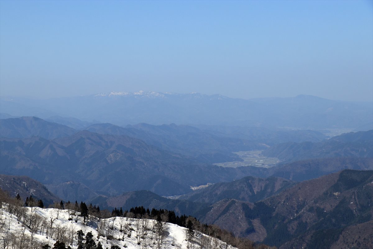 僅かに望遠したもの。標高が1,000を越えるような山には概ね雪が残っています。