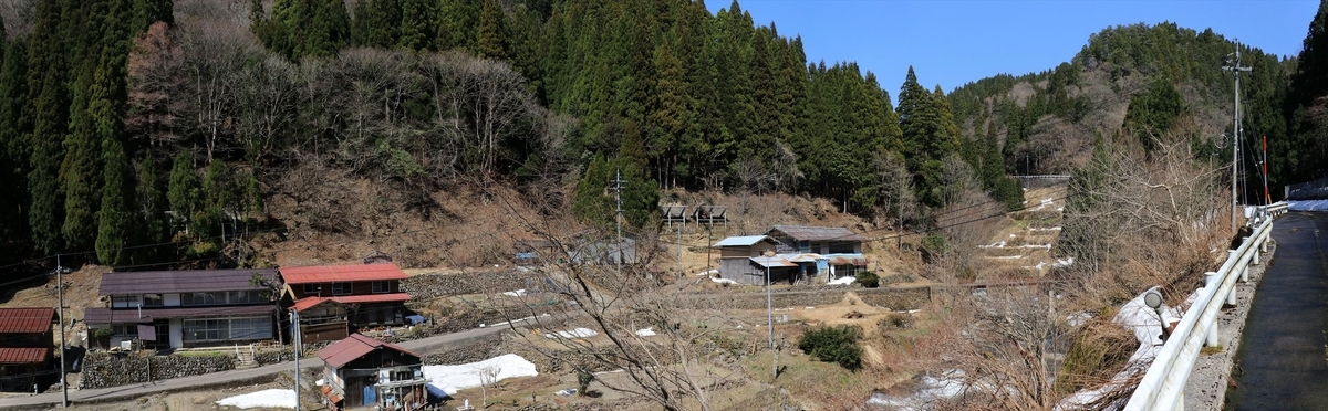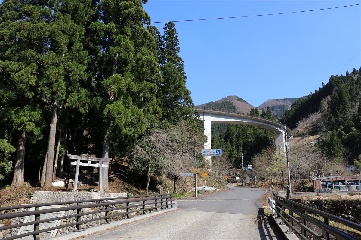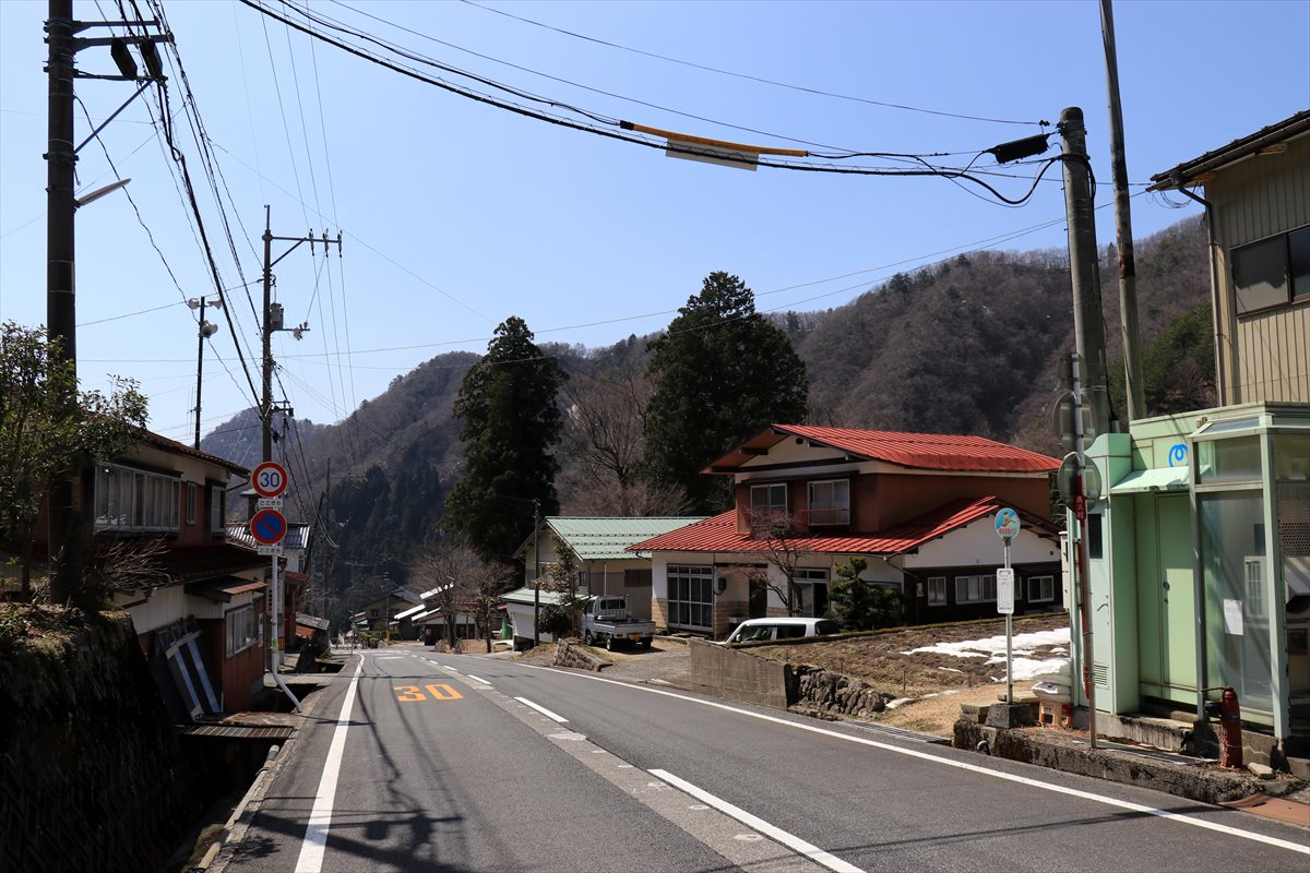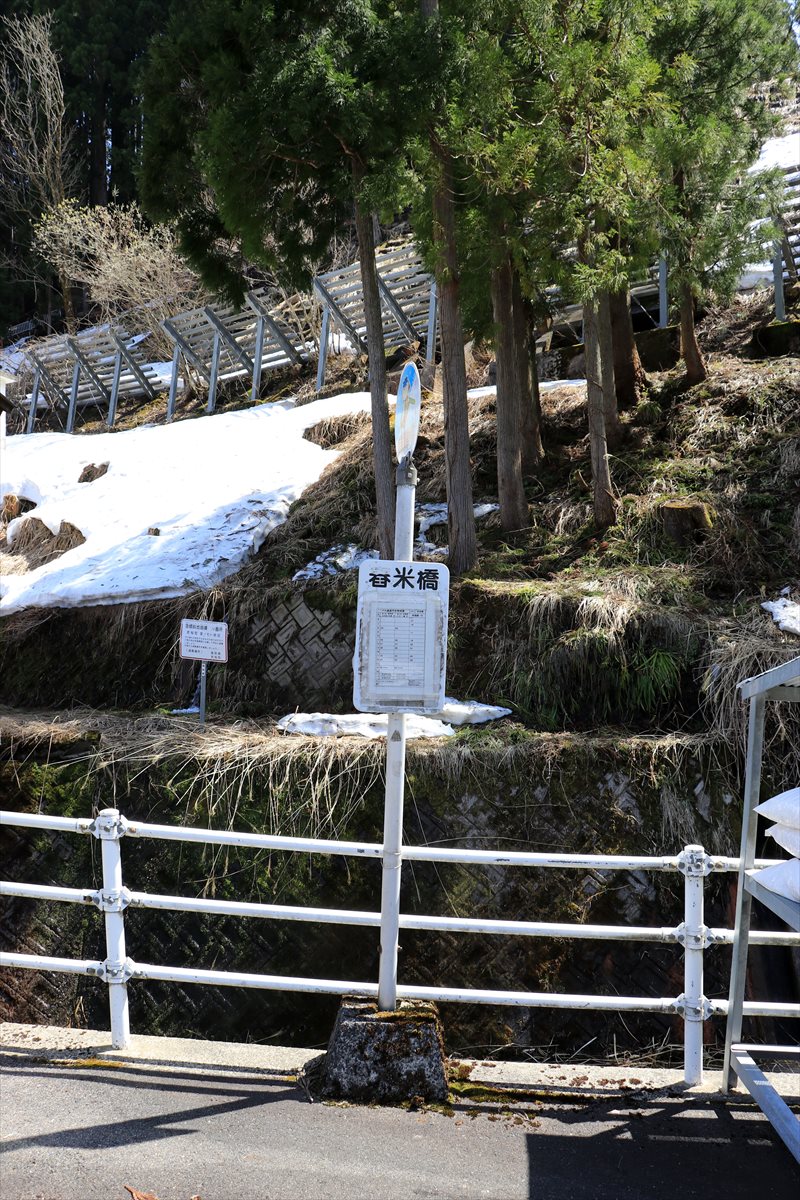 舂米橋のバス停を越えると舂米の集落の終端となり、棚田の辺りから暫く続いていた家並みは途切れる。