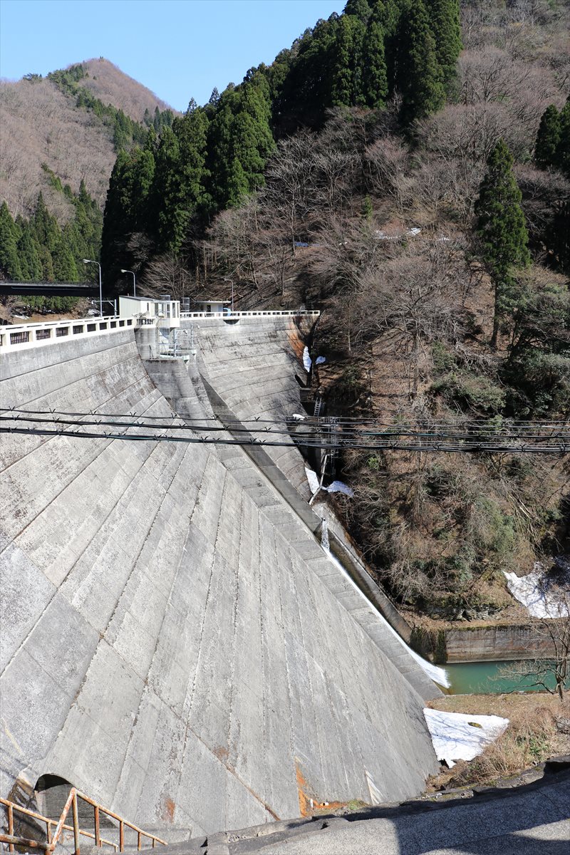 茗荷谷ダムの様子。光加減によってはエメラルドグリーンと言えなくもないですが。