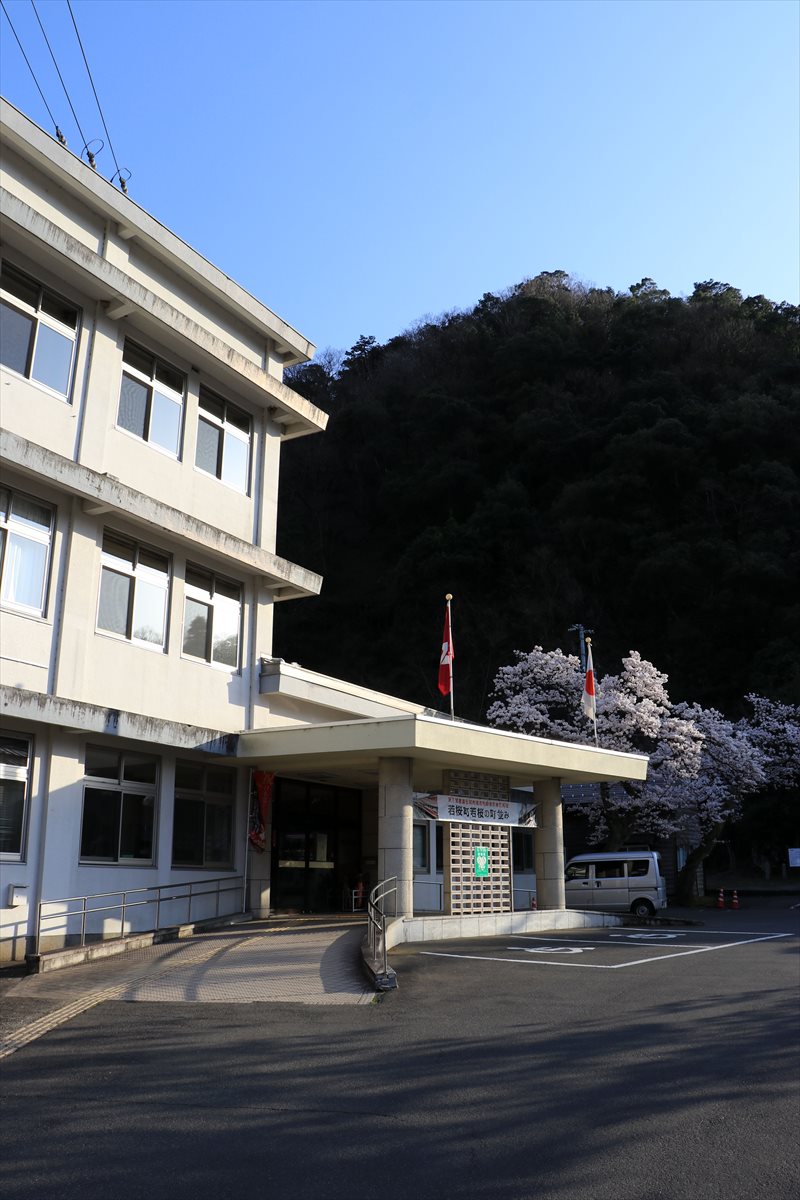 橋を渡った先の若桜町の役場。THE町役場って感じの無骨な建物。