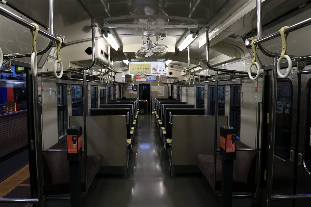 鳥取駅からは山陰本線で兵庫県を目指します。乗り換えた先の浜坂行きの普通列車は帰宅時間帯の割には空いており、1両に10人も乗っていなかった。