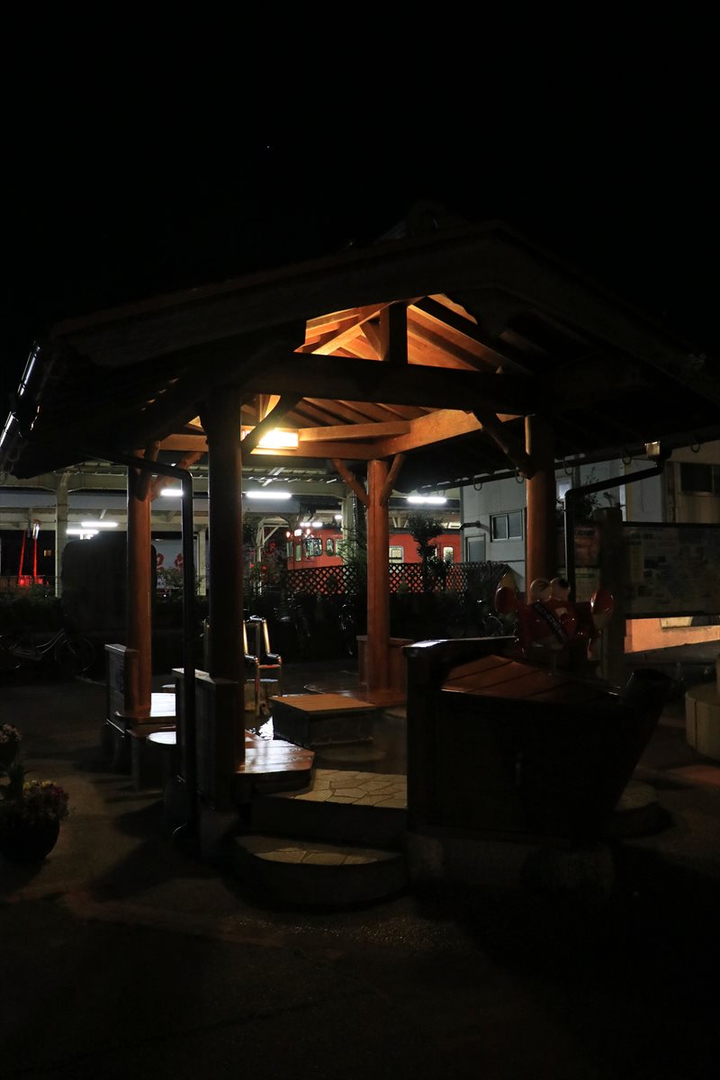 温泉地らしく駅前には源泉かけ流しの足湯が設けられています。営業時間は18時までとの事でしたが、営業時間外のこの時間帯でもお湯が流れ続けていました。