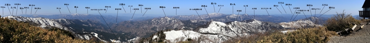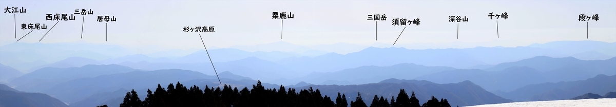 山名入りです。三国山背後の大山は非常に薄いですが、よく見ると白い山肌が確認できます。